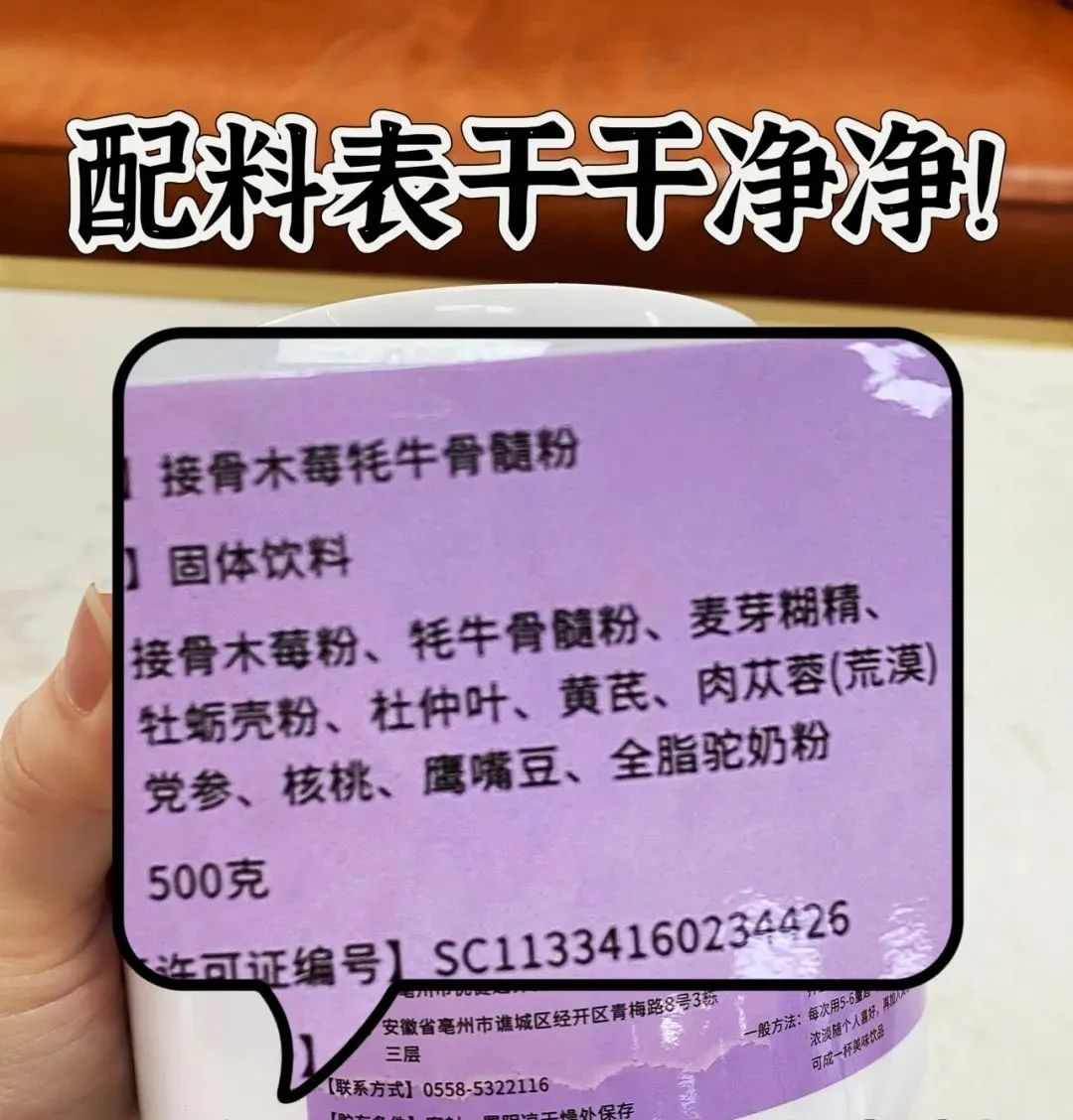 接骨木莓牦牛骨髓粉都是食材配方,配料比较干净,老人小孩放心喝!