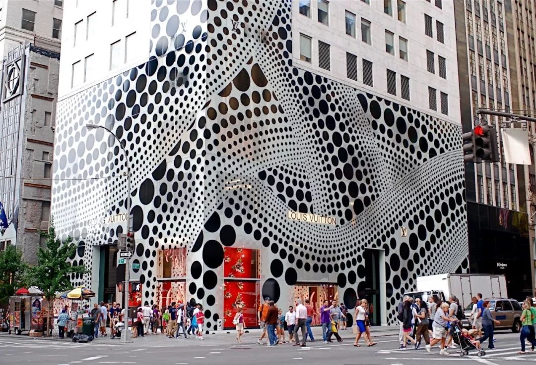 七十年代末,草间弥生回到日本,她的前沿性也是当时的日本艺术界无法接受的。一直到她五十岁的时候,纽约国际艺术中心为她举办了个人回顾展,草间弥生才“侥幸”没有被雪藏一生。这么多年来,她用艺术与疾病搏斗,最终把自己活成了艺术圈的传奇,她的作品,永远这么独一无二。路易威登和草间弥生的合作源于路易威登彼时的创意总监Marc Jacobs 和草间弥生的私人关系。这个诞生于2006年的合作不仅让路易威登的产品成为草间弥生艺术幻想的载体,就连路易威登店的橱窗和门厅也都化作草间弥生的奇幻乐园。