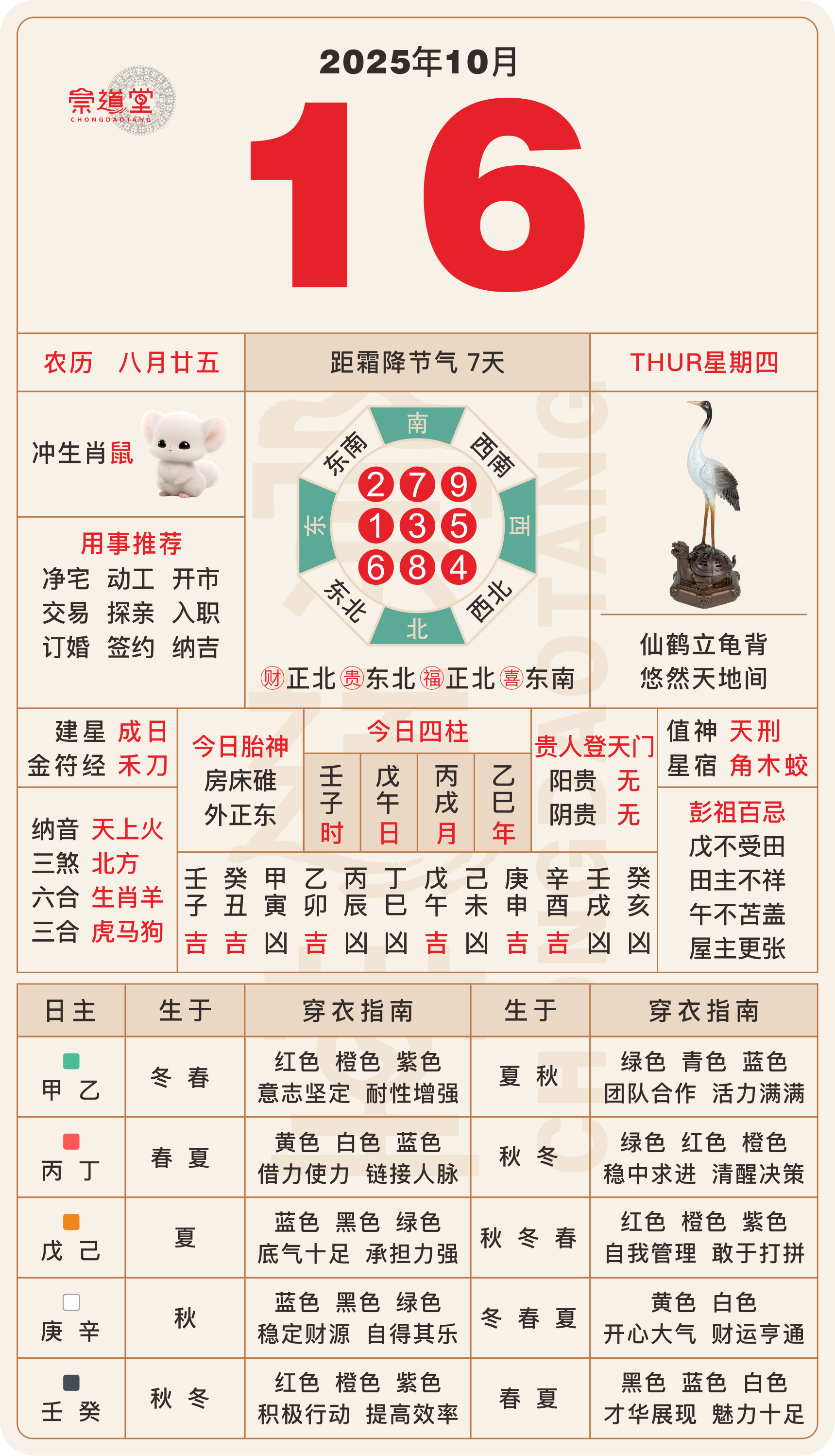 2025年10月16日 农历八月廿五 戊午日 冲鼠