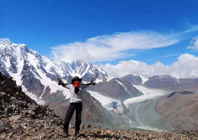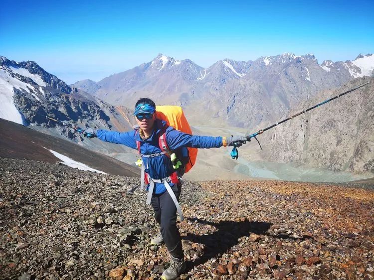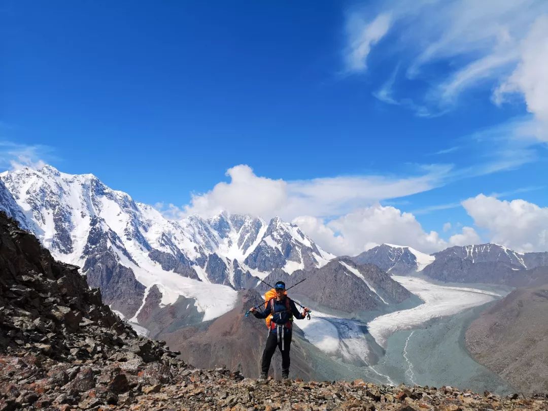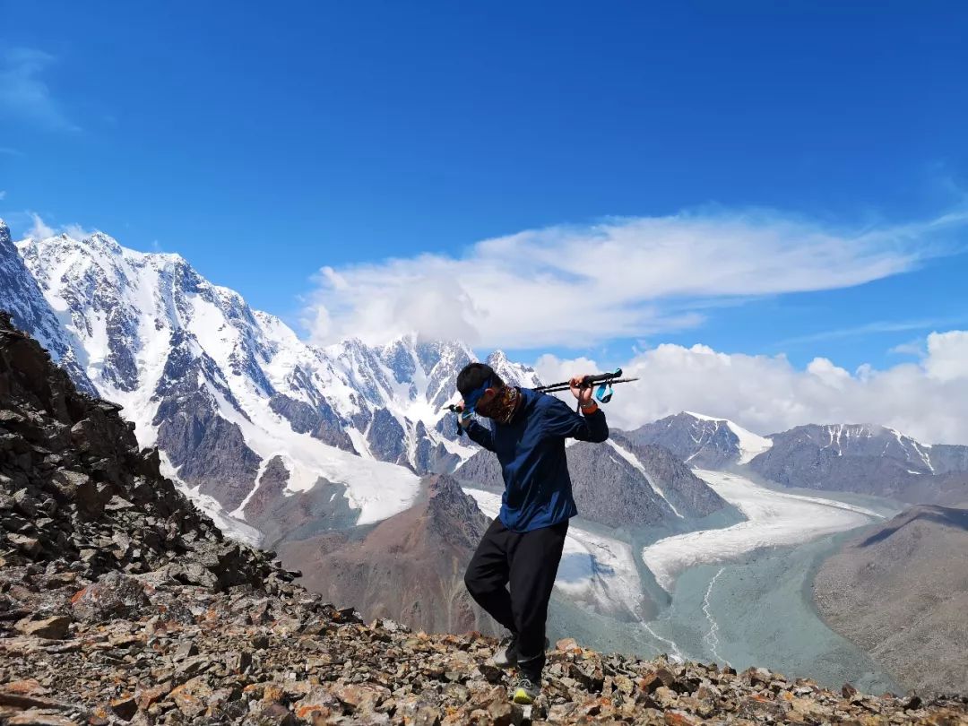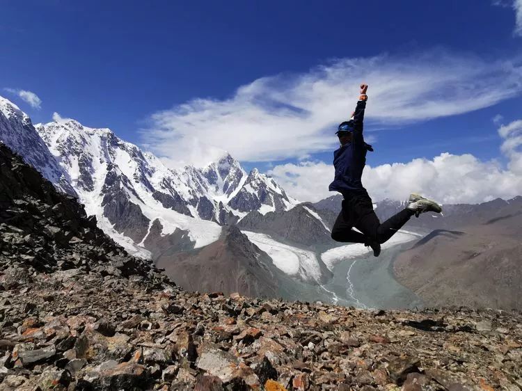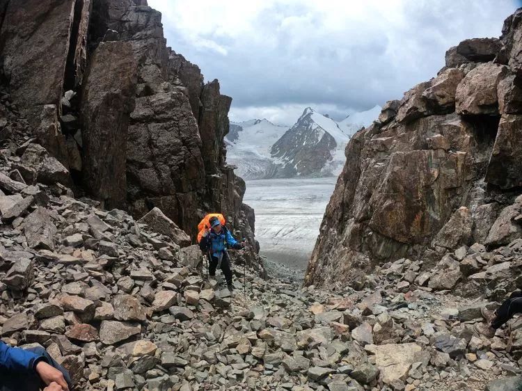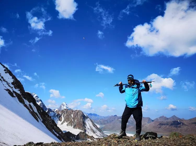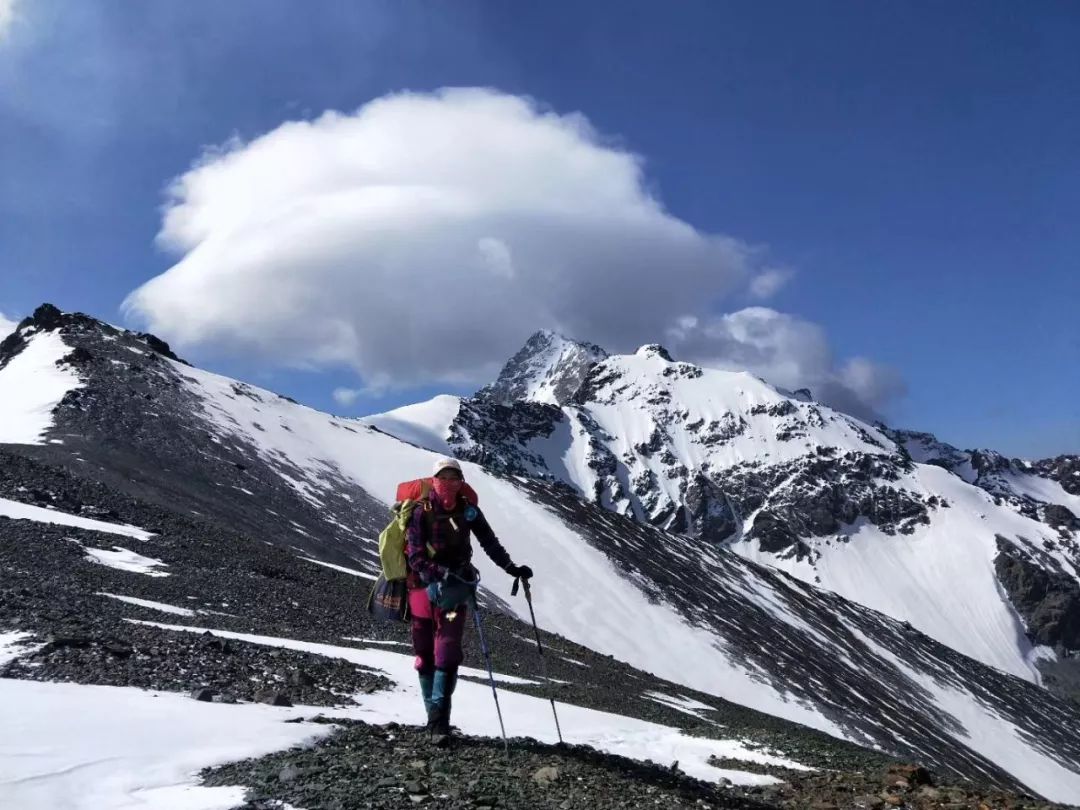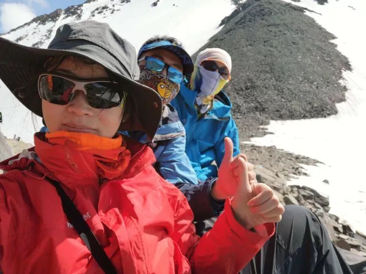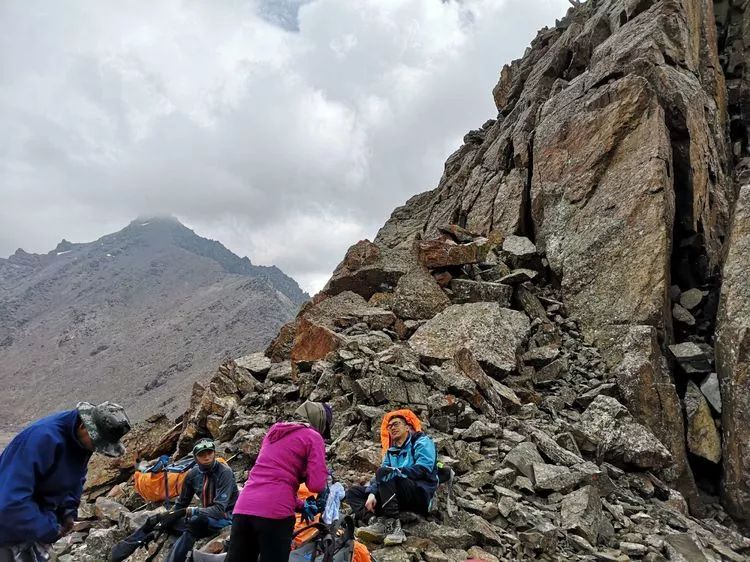 离开营地,开始了最后最高一个达板的翻越,4200米的西黑沟达板,又陡又长,全是小碎石,我学着驴途,之字型爬升,不知是没休息好,还是海拔确实有点高,气喘不过来,走不快。就这样一点点,比冰塔林高了,比雪线高了,横切努上最高点,终于翻到垭口。看见另一队在上面休息,我调侃到,经典的团队都是四个人啊。他们说对啊,刚才我们还在说谁是师傅,谁是二师兄呢。一会他们队的大叔也上来了,感慨我们年轻人真厉害,我说您更棒!他说我在家听着叨叨叨,血压都高,在这海拔,血压竟然不高了。我们哄堂大笑,那就多出来走走,运动总是好的!