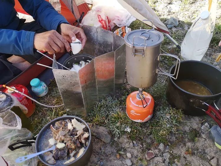 由于速度不慢,下午三点,又早早到了独家营地,因为怕再下雨,我们很快清场,搭好帐篷。路遇陕西独驴游侠大哥,烧好茶,点上烟,我和非文又烧热冰水,互相洗个了头,幸福感爆棚!