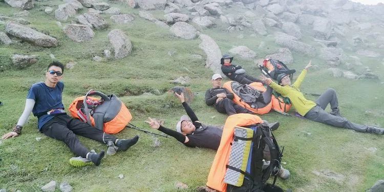 三爷四爷是北京同去的好哥们,心里支柱,快乐源泉!没有他们,我自己可能不会来。还有上海小帅哥非文,装备党,后期一路同吃同住,非常感谢。重庆妹子在北京,甘甘。走过狼塔C+V,自主登顶那玛峰,曾经全马400内,我们全程无声交流,是种难得的体验。领队老哥,新疆最强驴之一,重装山地徒步7分配速,一般越野跑追不上。我,大鹏,330左右小跑渣,北京土驴一枚,正在掉入1越野坑,准备首百…由于后期发生的故事,只有这一张合照,凑活看吧,哈哈…