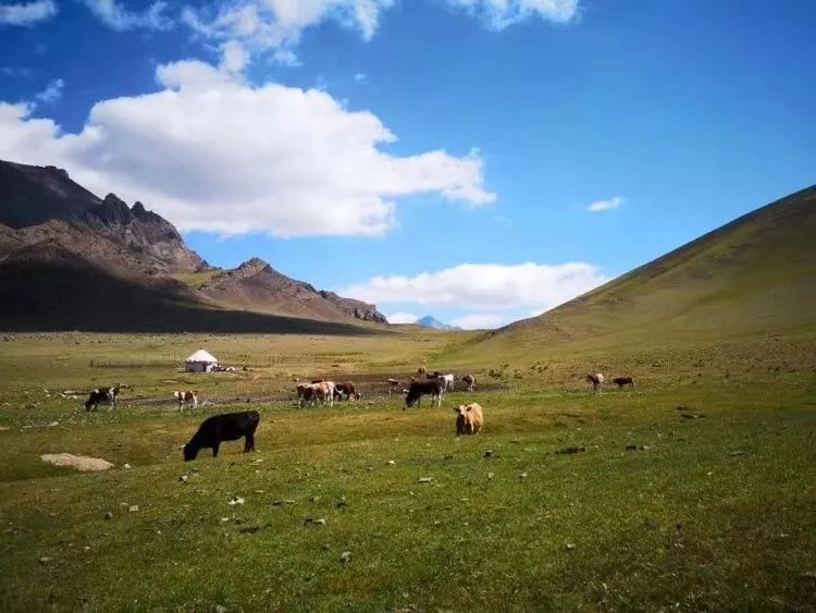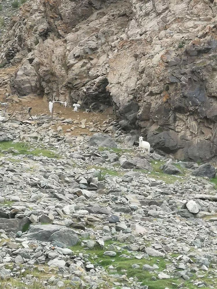 七天狂野又孤独的生活,终于要胜利结束了,心情格外轻松。虽然这么想着,今天也有19公里要走,可能俩年轻人觉得没什么景色,已经有些疲倦了,我却精神和身体亢奋,走在天山海拔3000米的天然高原牧场上,想起金典有机奶的广告了,哈哈…单纯从徒步来说,今天更像是享受大自然,前几天确有些登雪山的味道。既恋恋不舍,欣赏着一切,又希望早些回到市里。中途看到了几头被狼咬死的羊,尸体已经发黑。还有闪着红蓝灯的设备,据说也是驱狼的。