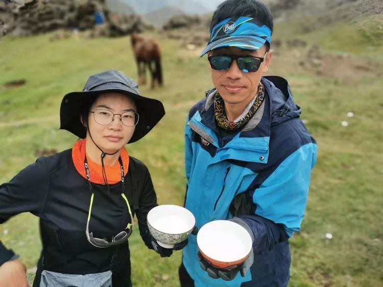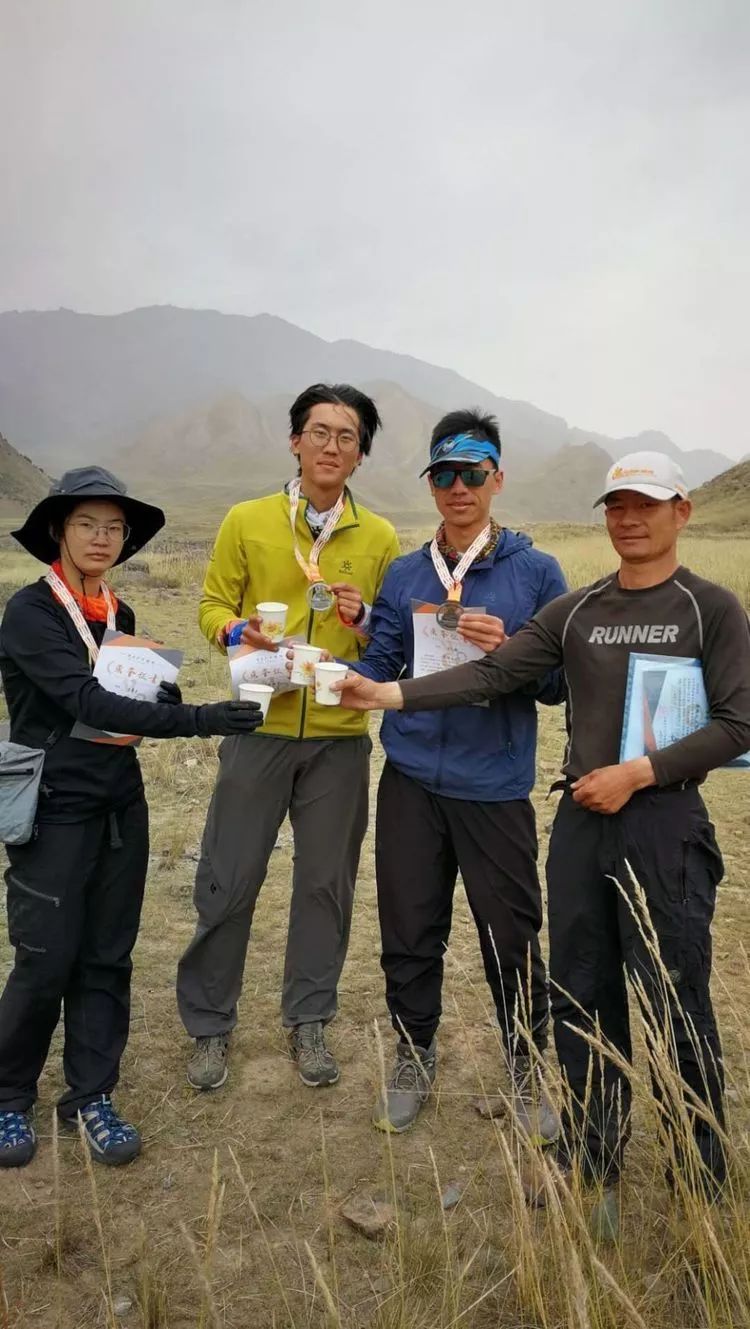 快到底时,驴途老哥请我们喝了马奶,有甜有酸,我们要了酸的,想知道啥味自己来喝吧,哈哈…喝完身体感觉确实有劲儿了,最后五公里,我再享受下山地徒步的节凑,和驴途10的配速走完了。牧民开车来接,顺便把奖牌和奖状带了上来。开可乐,蓝莓,西瓜,我们几个快成野人的家伙,共同庆祝博格达大环线胜利出山!