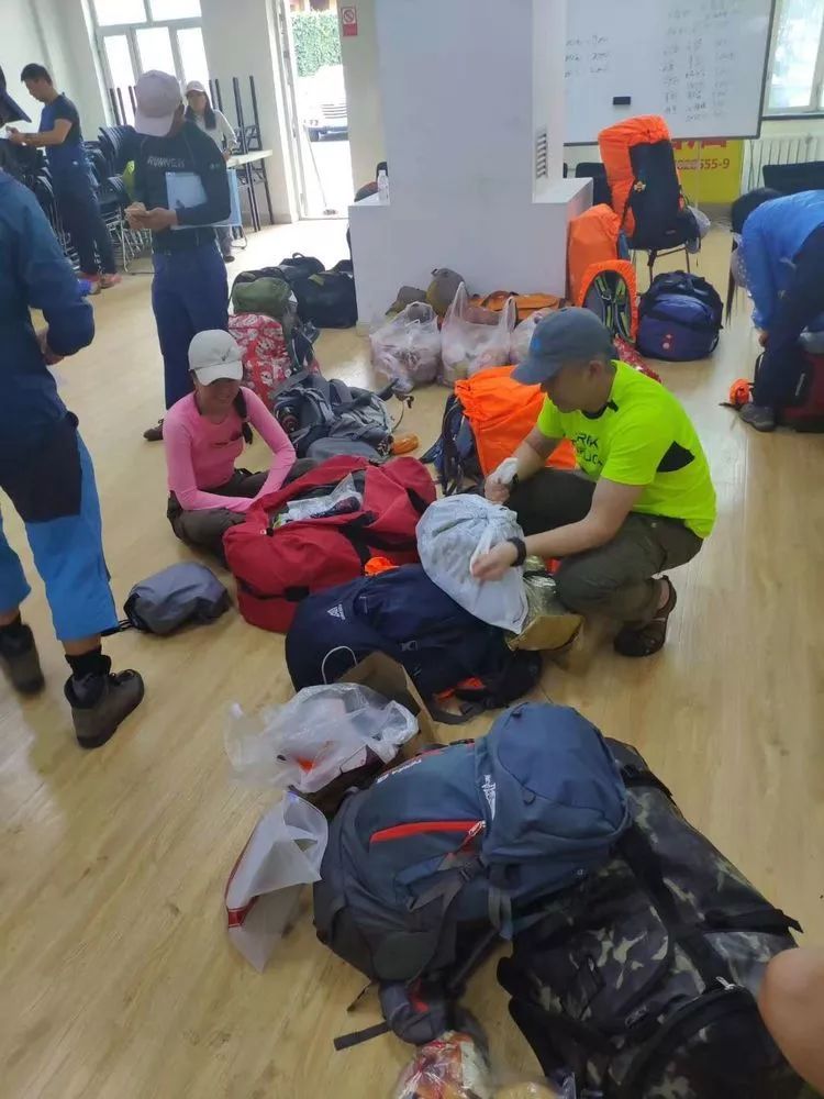 行前装备检查,主要是鞋袜和保暖性能。(去乌孙的多,其次狼塔,挑战博格达的就姆们6个)
