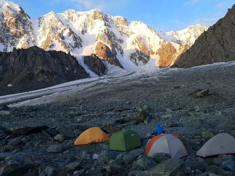 眼观六路耳听八方,领队凭借丰富经验,带我们度过了危险地带,终于到达了博格达登山大本营!
