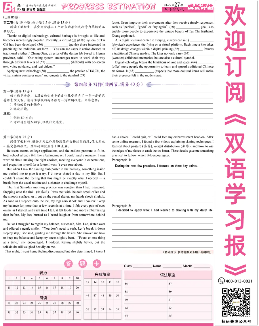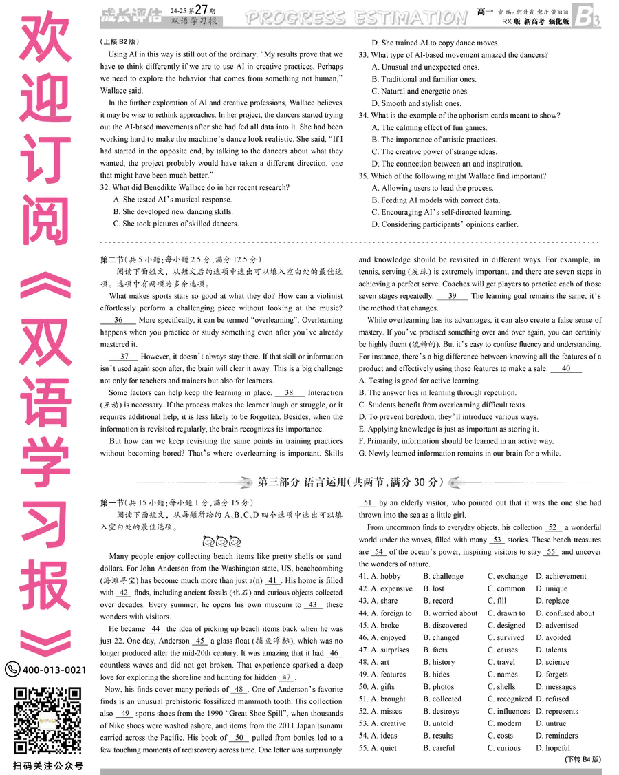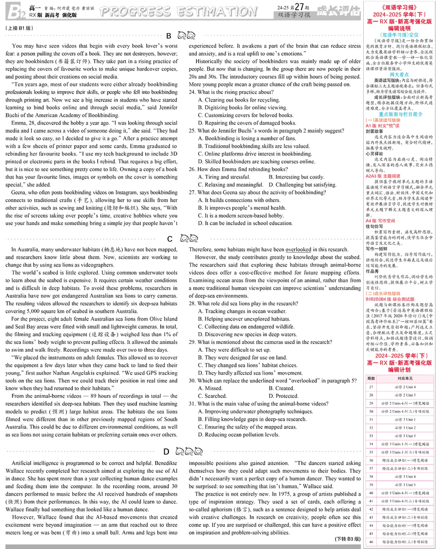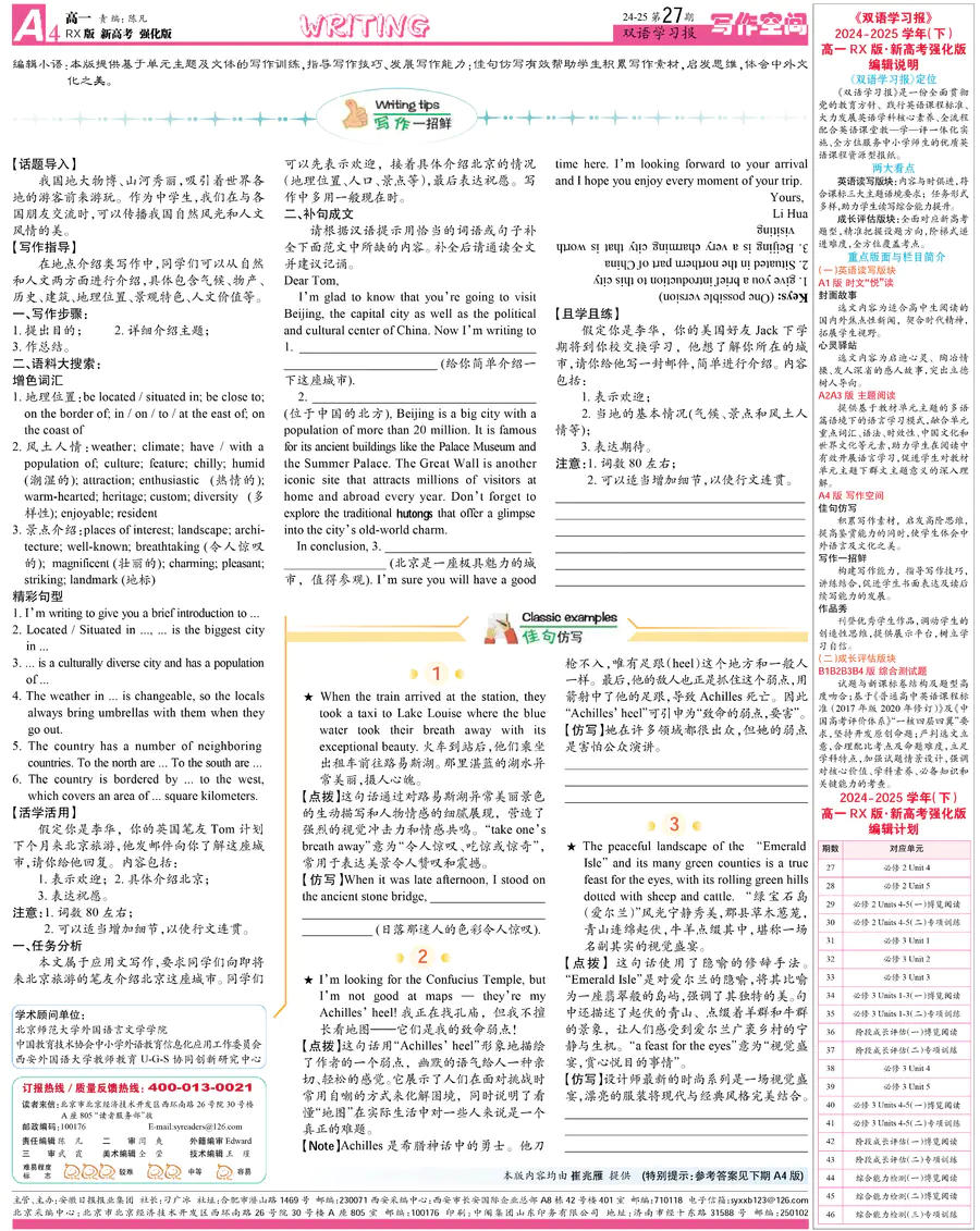 高中英语样报 高一 RX版 新高考强化版 第27期