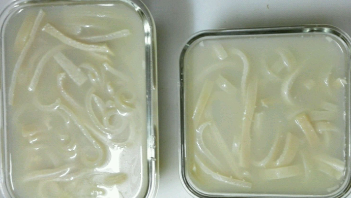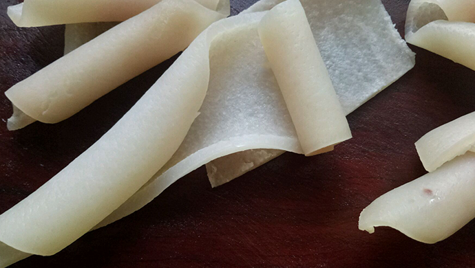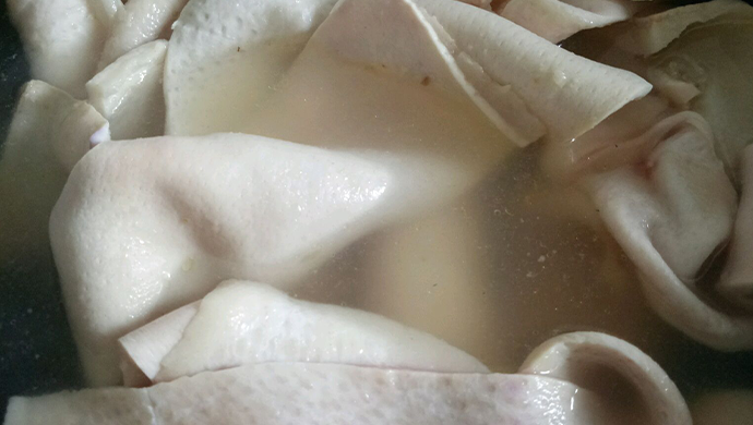 肉皮1斤(猪背皮,猪外脊上面的那层皮最好),6斤水;