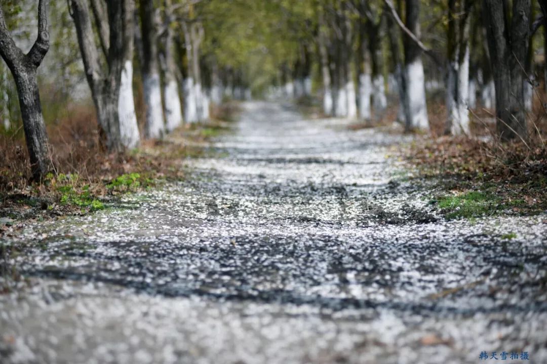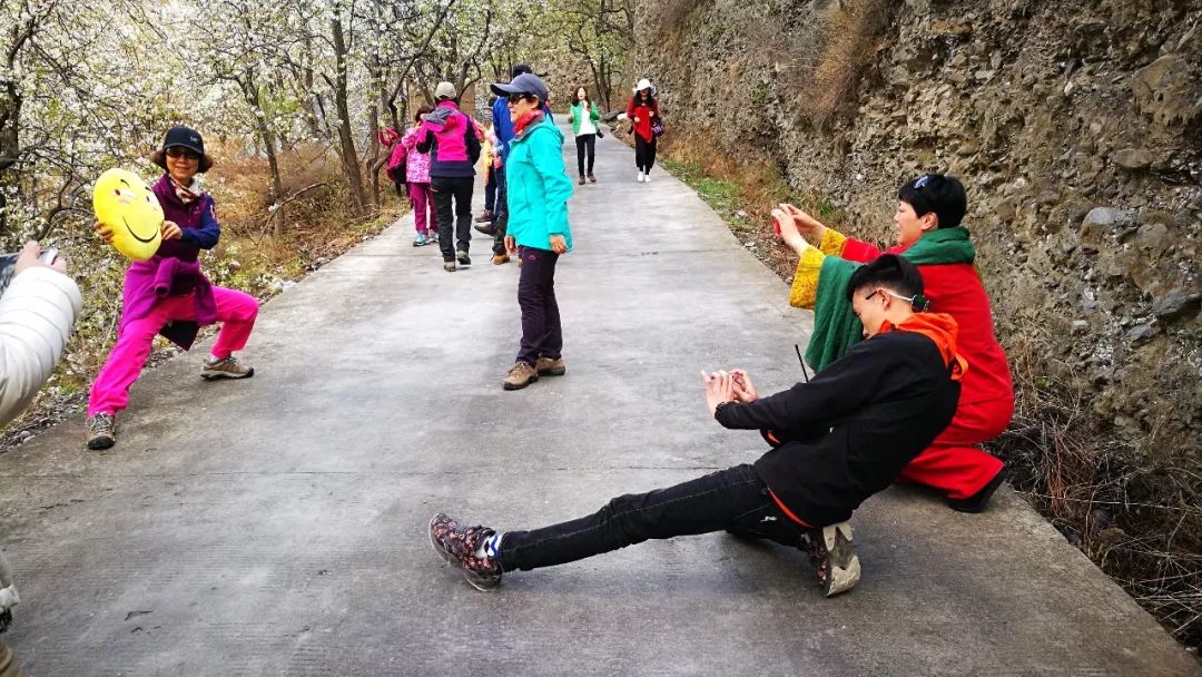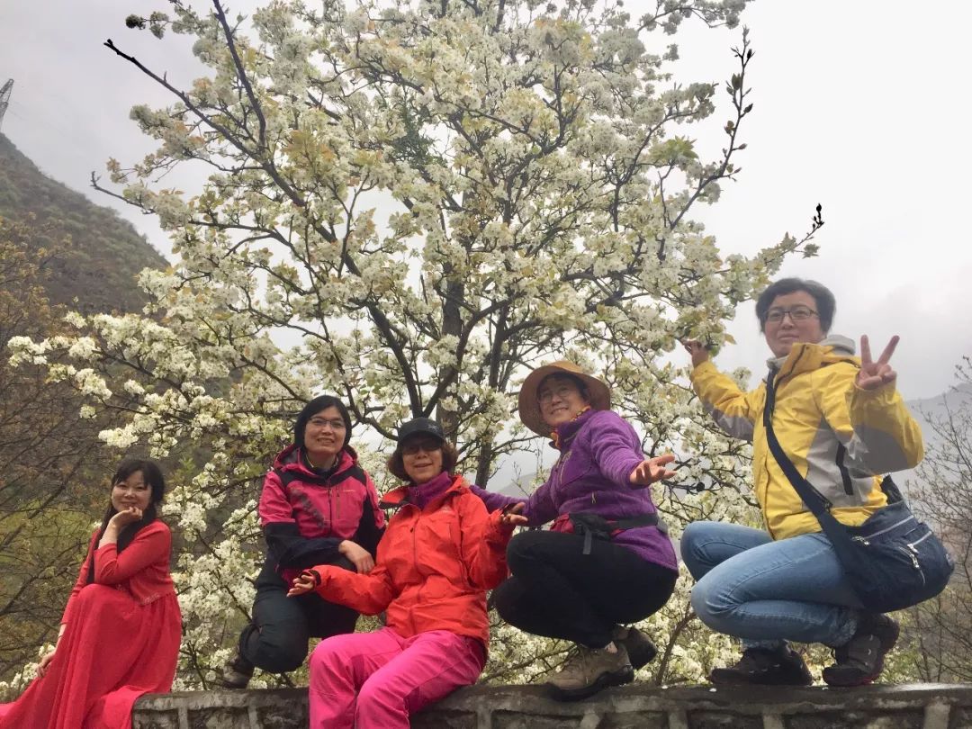 村口的一棵梨花树惹得队友们兴奋的开始了摆拍