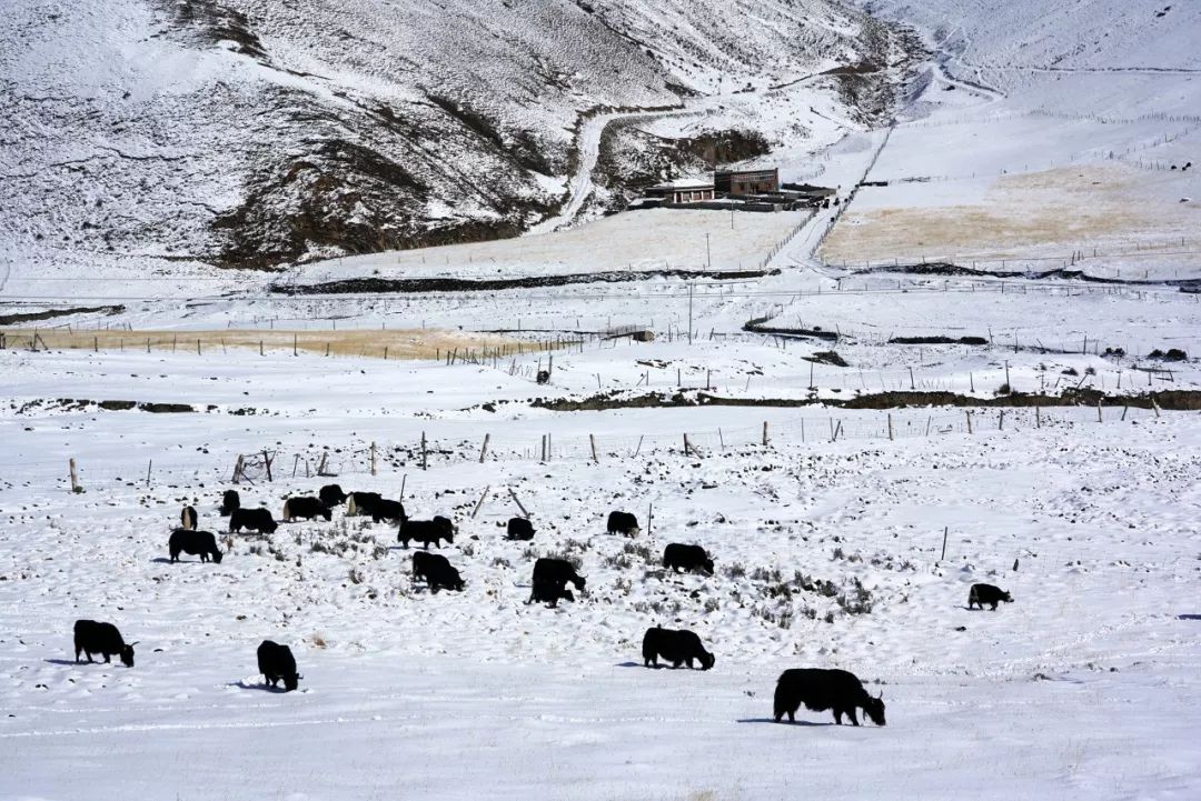 沿着318国道观毛垭大草原风光,看牦牛悠闲的在雪中寻觅它们的美食。