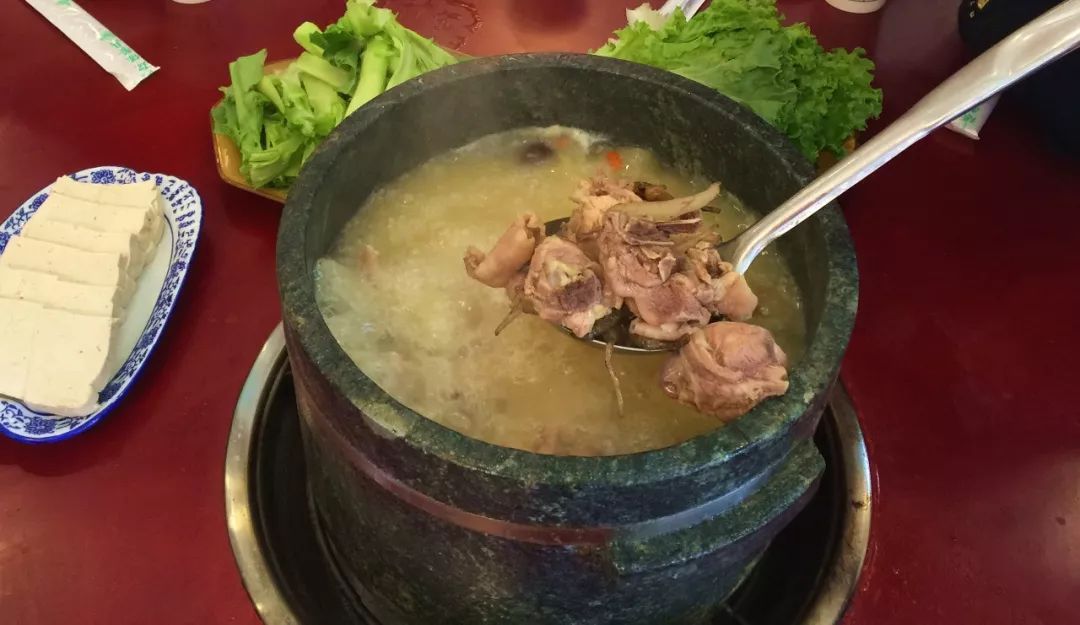 鲁朗石锅鸡,用藏香鸡,辅以手掌参、天麻等四五种药材,用慢火炖制,汤中有一股淡淡的药材清香,鸡肉嫩而有弹性。