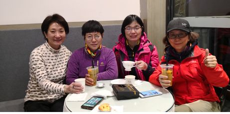 候鸟率领的2号车上的14位队友,队名叫《看花滑稽小战队》,这名字起的绝对和候鸟有直接的关系,看他怀抱的抱枕。队友左起为史努比、可可、李凡夫、单纯色、polly、娟、红豆、芬、林子、兰子、豆子、威威、群、候鸟领队、峰回路转(有关她们的故事,且看后面分解)