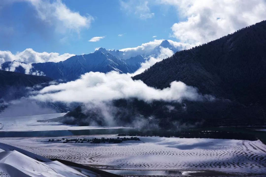 本次行程风景最秀美的一段,然乌湖是著名的高原冰川湖,面积22平方公里,海拔3850米。碧蓝的湖水碧蓝,森林雪山倒映,早餐后经过上然乌湖游览来古冰川。