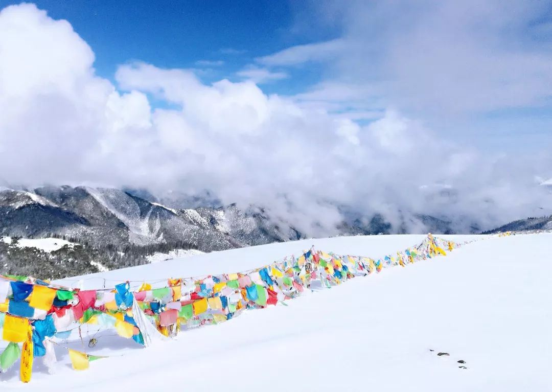 翻越剪子弯山(海拔4659米),云海翻滚,雪山雄壮。