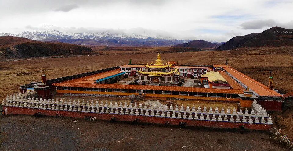 队友航拍的纪念班禅大师而修建的纯金制作的纪念塔及大名鼎鼎的塔公寺