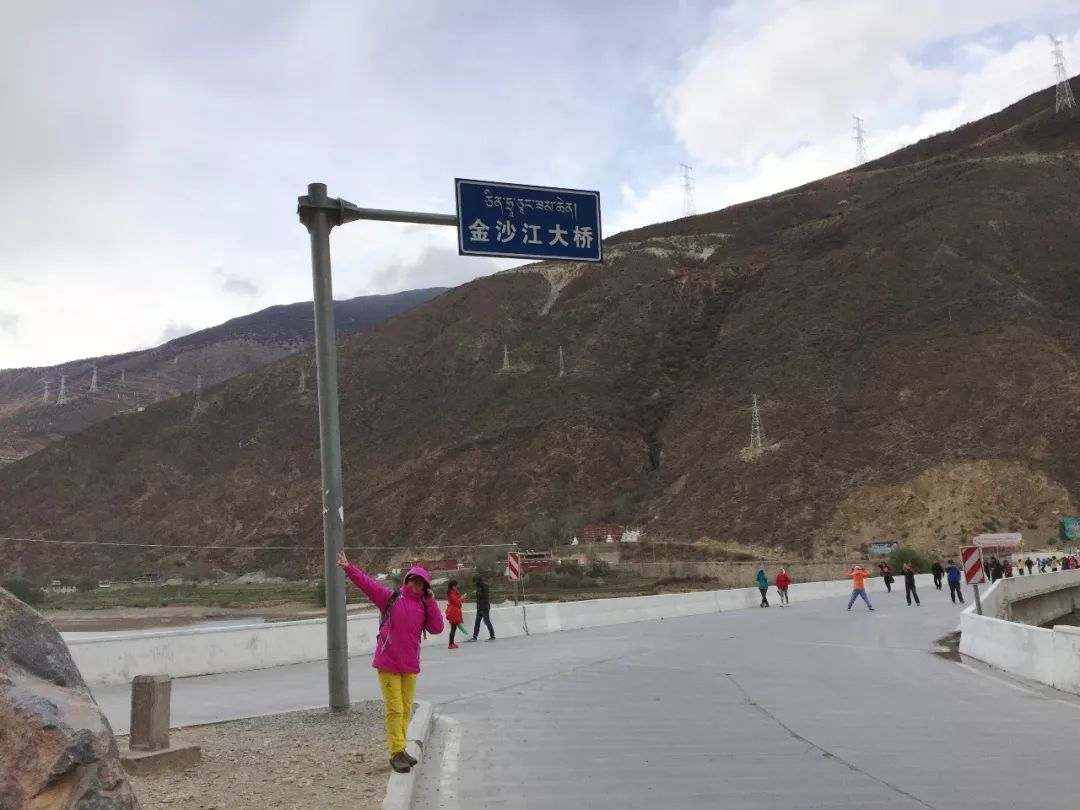 我们徒步跨过金沙江大桥,大桥一半在川界,一半在藏界,枯水期没有惊涛拍岸的磅礴气势,只有大风呼呼作响。
