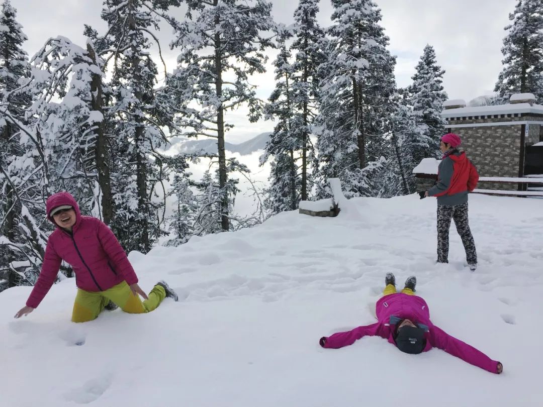 看这姿态,娟和Polly已然兴奋的扑倒在雪地上,polly背对着我大喊着让我拍照,全然忘记太兴奋会高反,这里已经是海拔4659米的剪子弯山口。