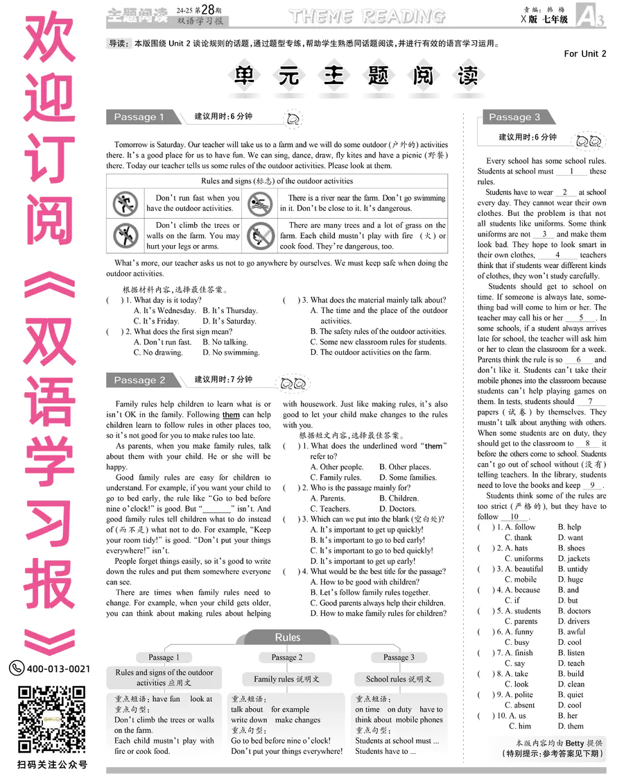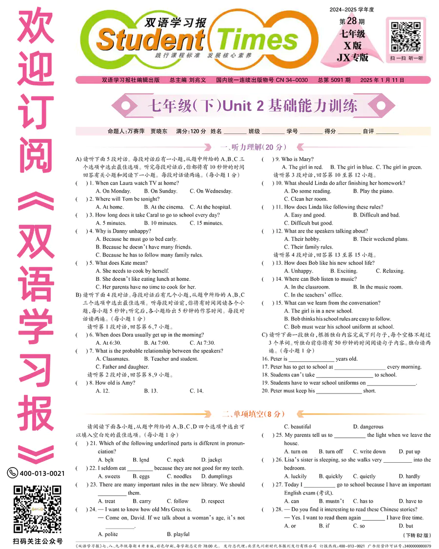 《双语学习报》七年级 X版JX专版 第28期