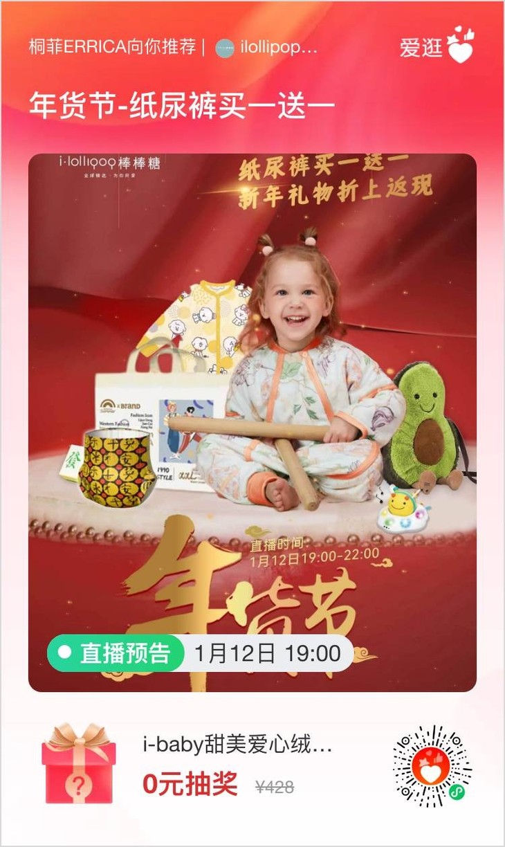 今晚就在i·lollipop棒棒糖直播间,年货商品,全场每满99元减30元,囤的越多越实惠。大家快来抢年货!各种奖品,多种好礼等你来拿!我们不见不散!