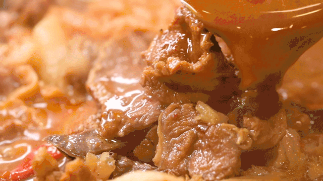 鲜美的汤汁完全浸入到了牛肉里面