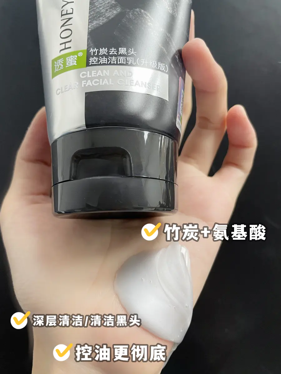 氨基酸表活体系+天然活性竹炭成分,配方温和,能有效吸附堆积油脂,改善黑头粉刺痘痘,关键是0皂基,洗面奶用着非常舒服,皮肤一点也不紧绷