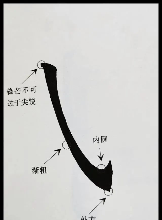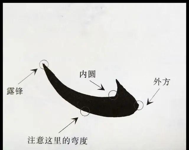 能否写好钩尖,是毛笔书法功底的直接检验。无论是写竖钩,竖弯钩,还是戈钩,或者卧钩,钩尖写不好,基本就算败笔了!也暴露了笔者的书法功底。比如,竖钩,戈钩的写法,其钩的部位应该是内圆外方,如下图。钩尖可长可短,根据笔画需要来写。