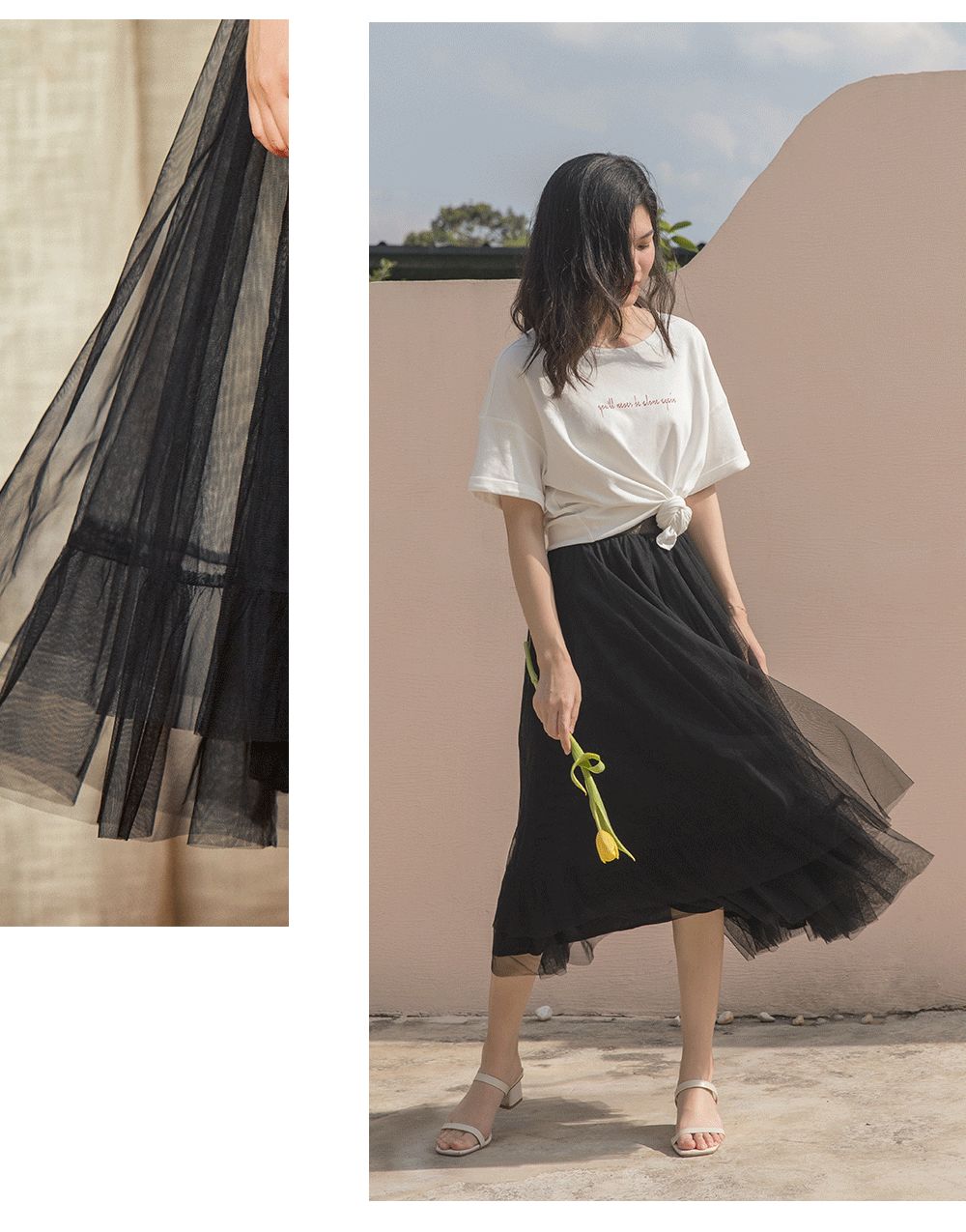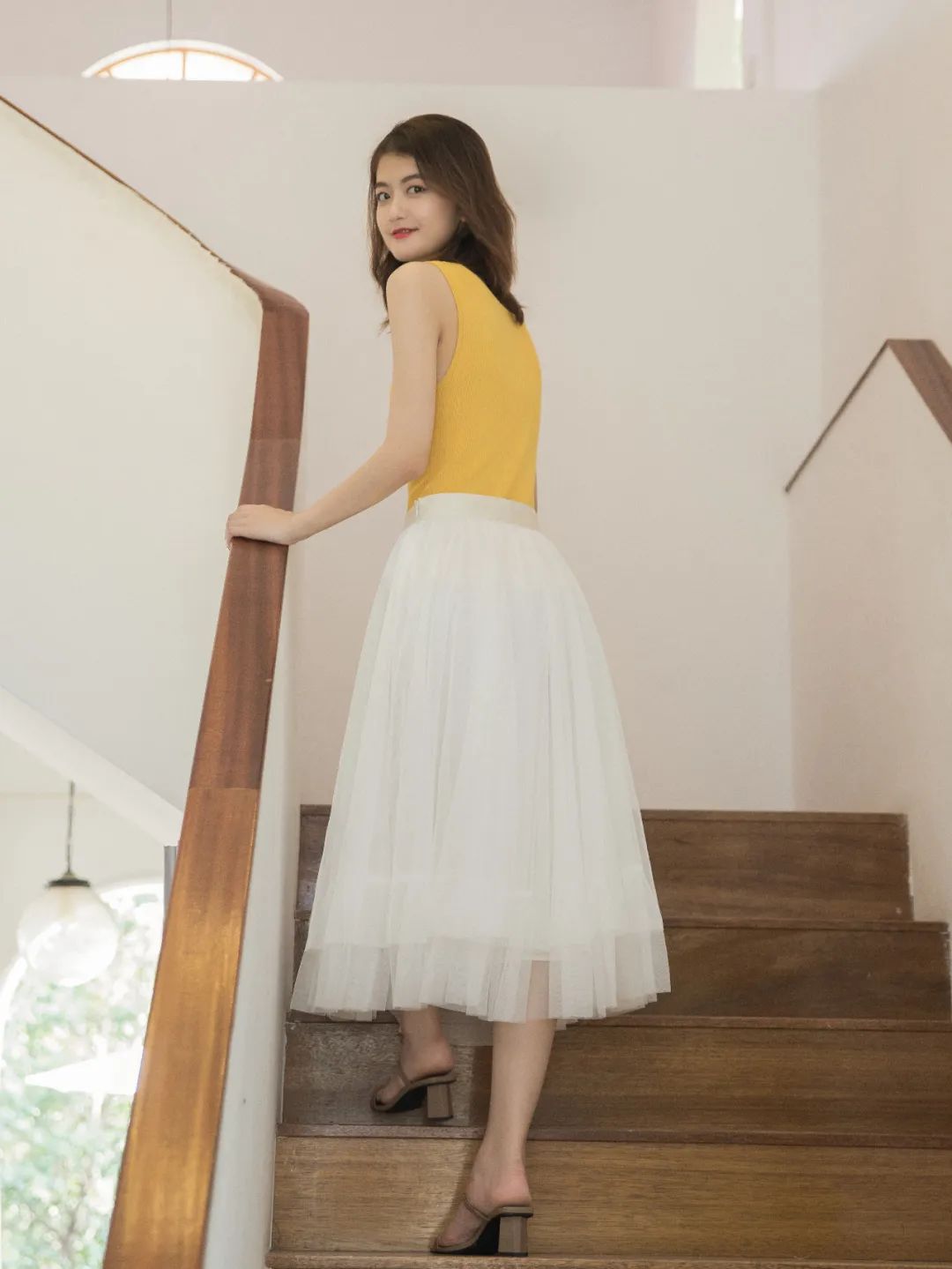 将飞扬的轻纱熨帖地压在身上。