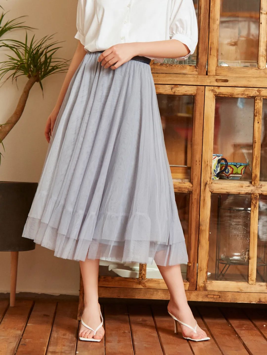 它使得腰线不会往下掉,和裙摆形成一个A字,