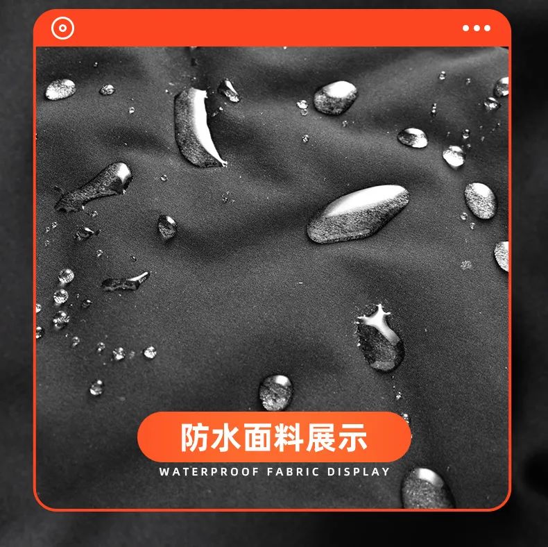 外层它采用防风拒水的高密度面料,裤子表面会形成像雨伞一样的疏水层。