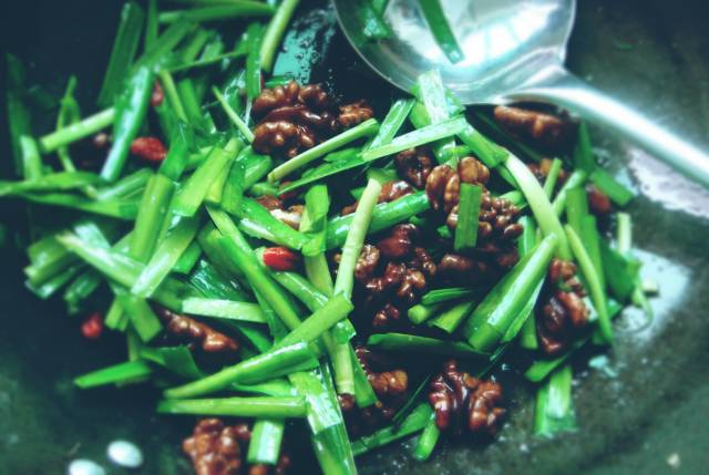 韭菜炒核桃仁,一道色香味俱全的上海菜,也是补脑美容的素药膳!无论男女,谁吃谁聪明,谁吃谁好看!