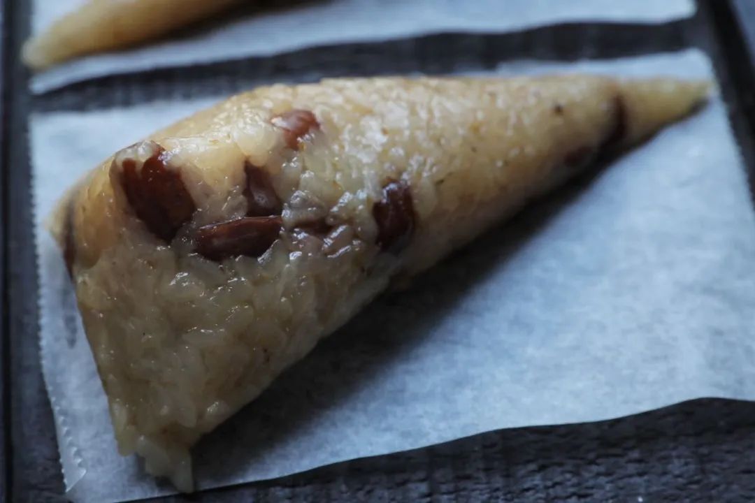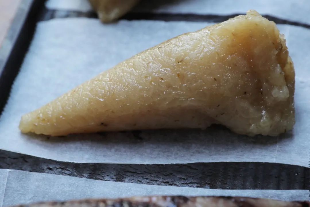 这是没有加碱的白糯原味粽,原味最考验食材,先别蘸糖,试试直接吃,能尝到白糯的清甜回甘,这是粽子的本来味道。