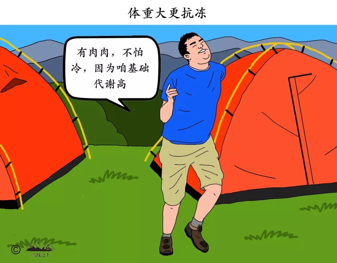 基础产热能力强的人更抗冻:有些体重偏胖的山友抗冻就是因为体重大,基础产热能力强。身材瘦小的山友更容易怕冷,很可能是因为其基础产热能力略逊一些。