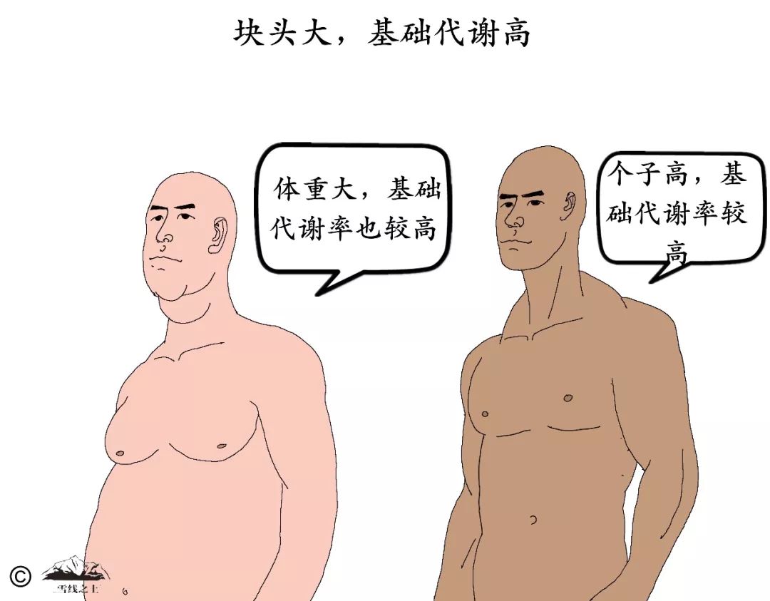 所以体型偏胖的人抗冻,很大原因是其基础产热能力强。个高的人往往也比较抗冻,也是同样的道理。