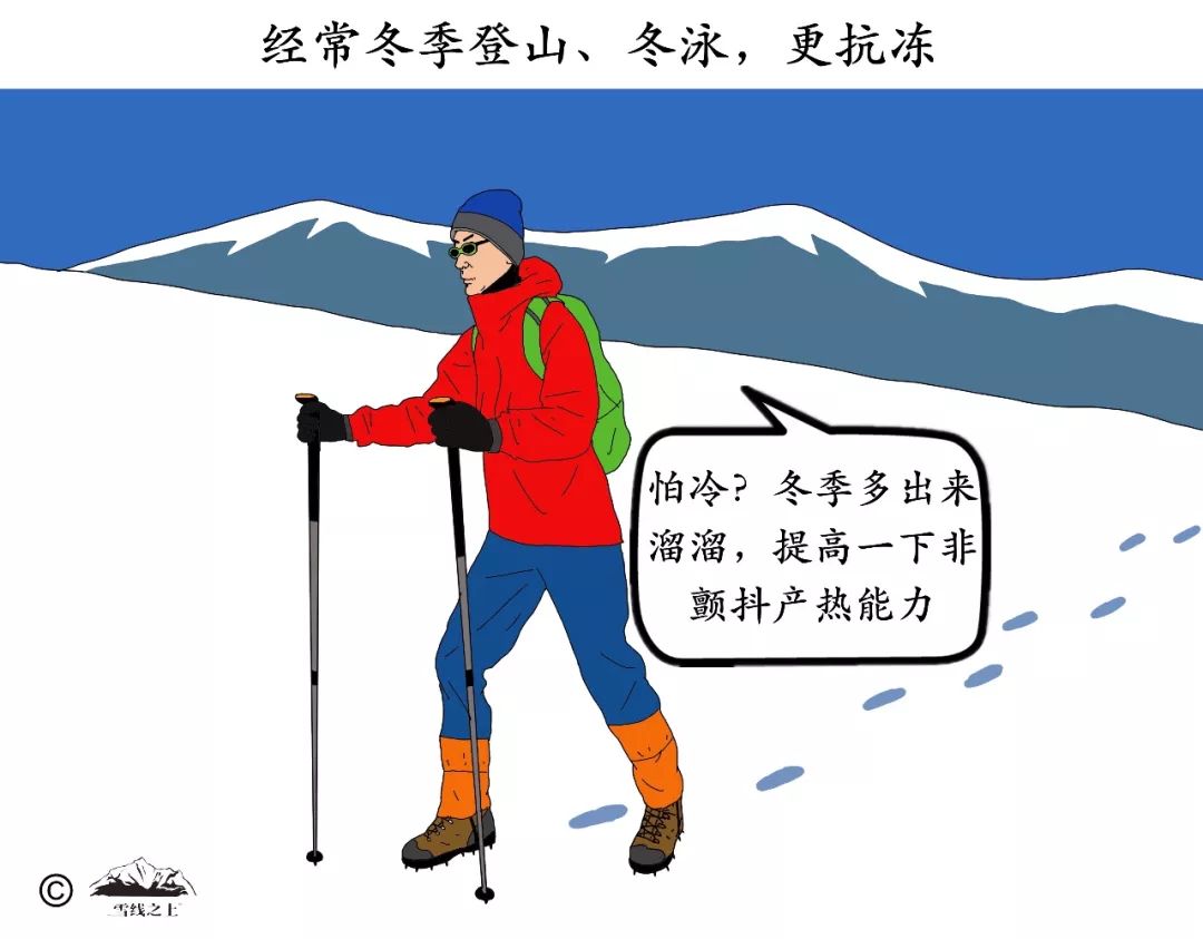 经常冬季登山、冬泳、洗冷水澡等,身体长期受到寒冷刺激,所以其非颤抖性产热能力强,也会更抗冻。