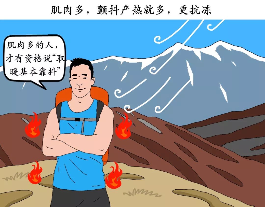 颤抖产热也是一种很强的产热模式,肌肉多的人颤抖时产热也多,所以抗冻能力强。