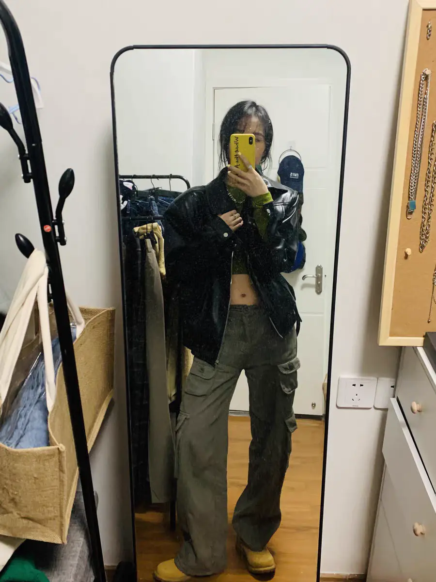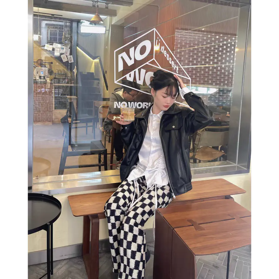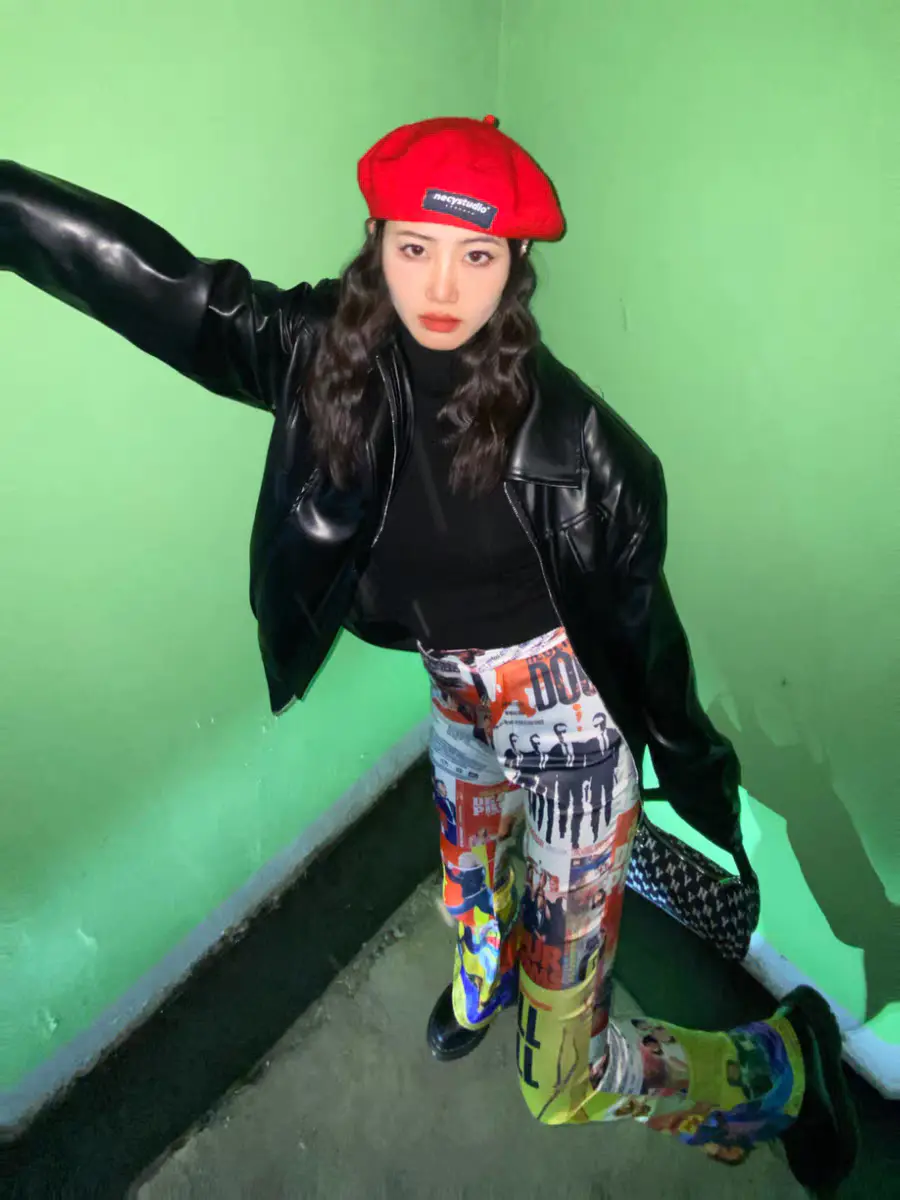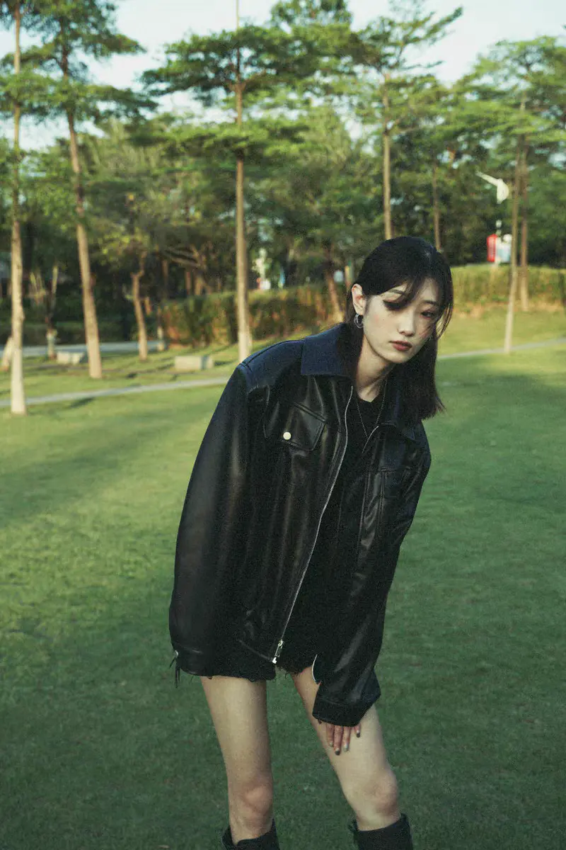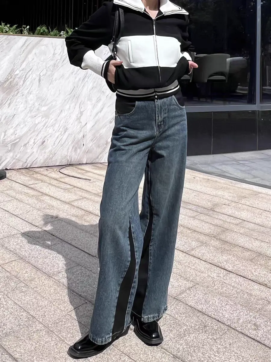 “撕裂黑暗的黎明”皮拼接牛仔裤