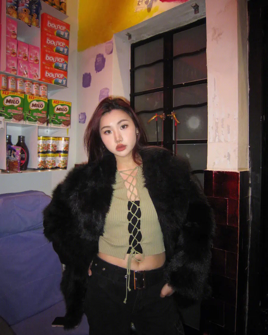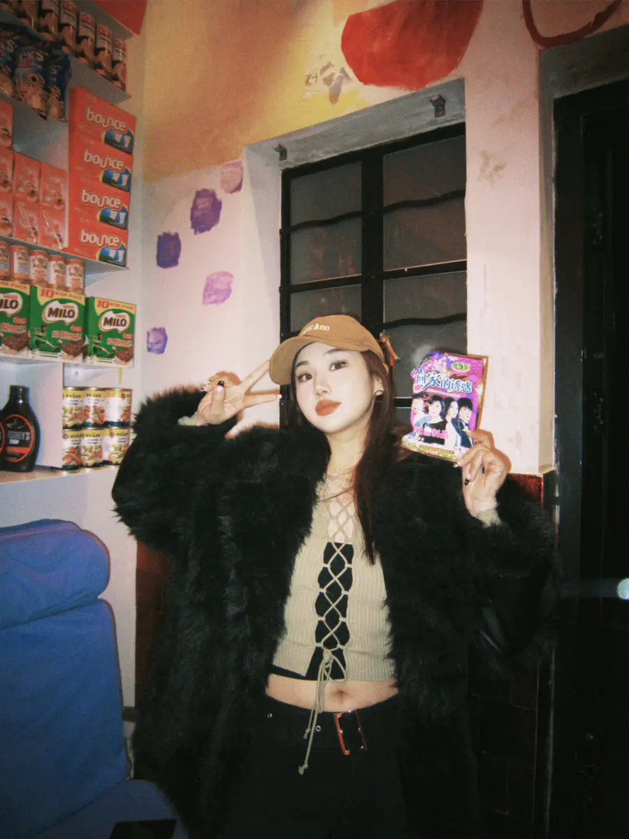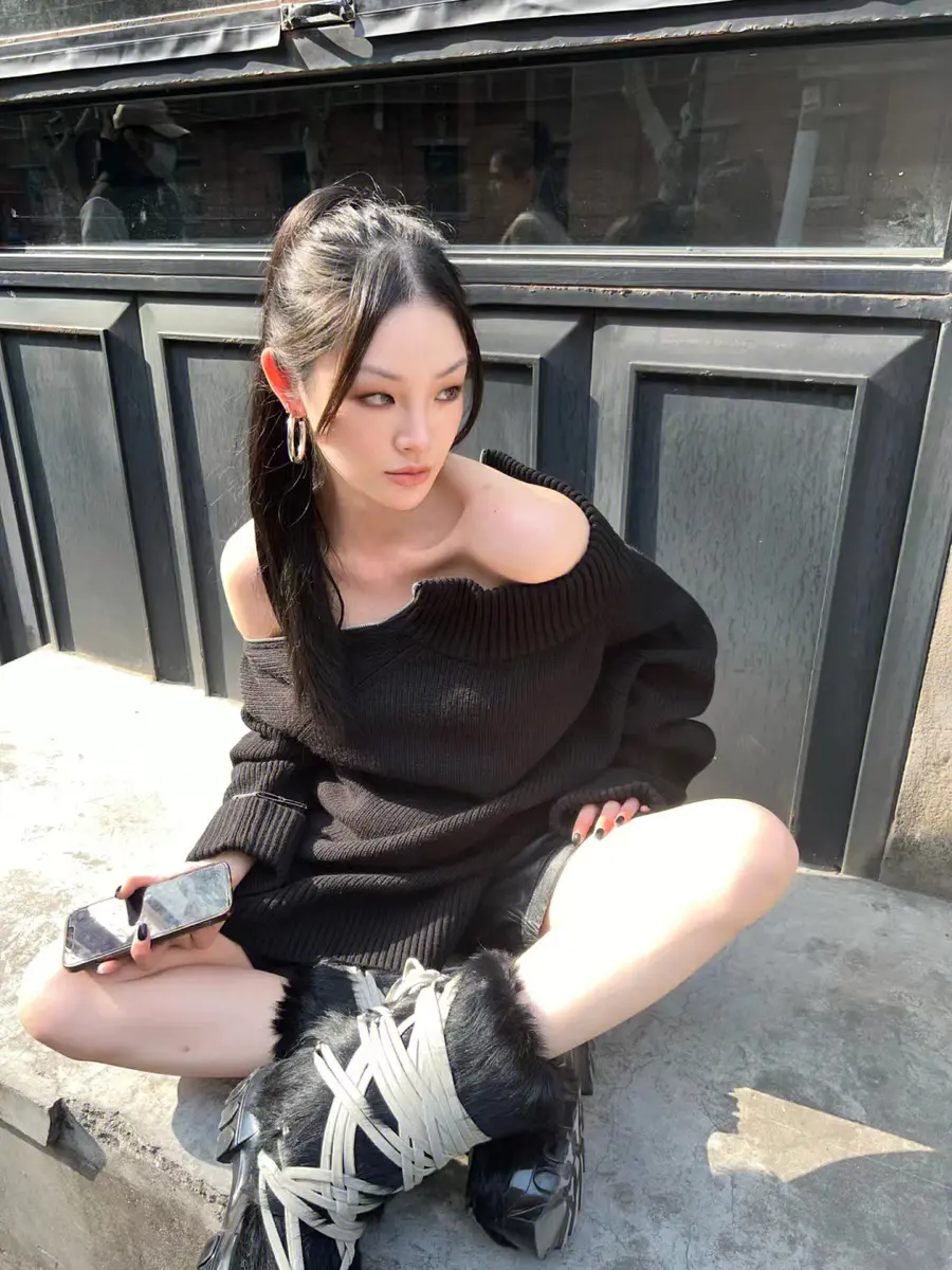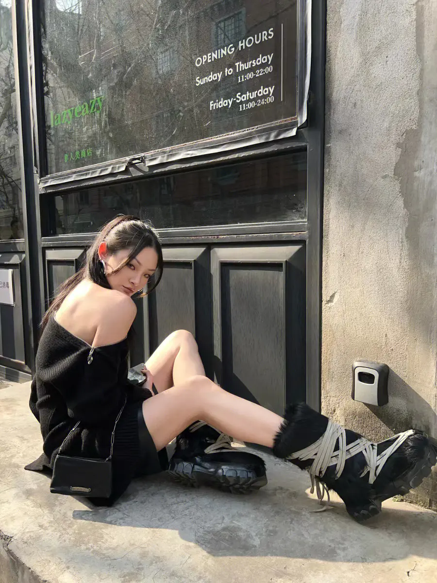 “撕裂黑暗的黎明”皮拼接牛仔裤