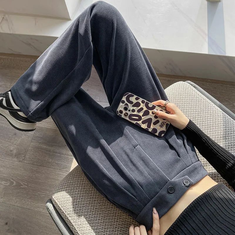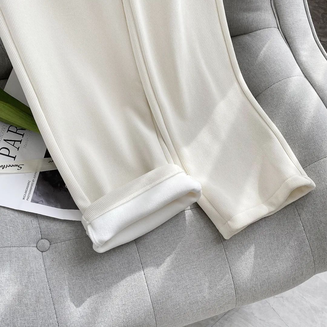 搭配裤身的竖坑条纹理,显瘦第一名呀!就算再加条秋裤,也还是瘦瘦的小鸟腿。