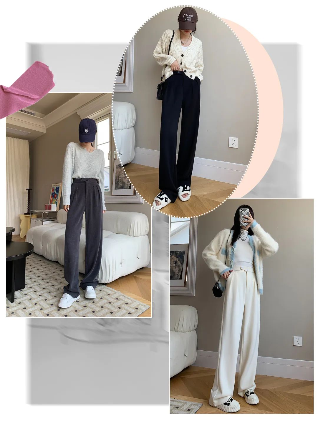 他们惯用的百搭神器就是雪尼尔直筒裤。