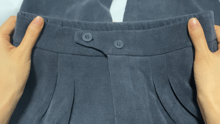这条裤子使用的面料是雪尼尔面料,也就是俗称的筷子条面料。