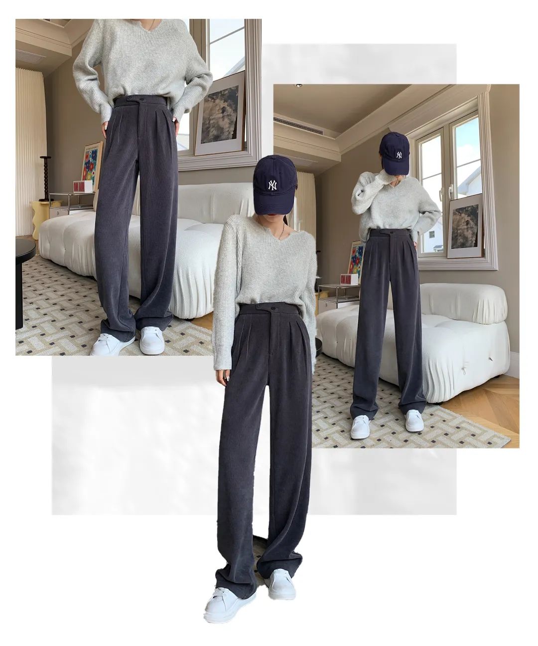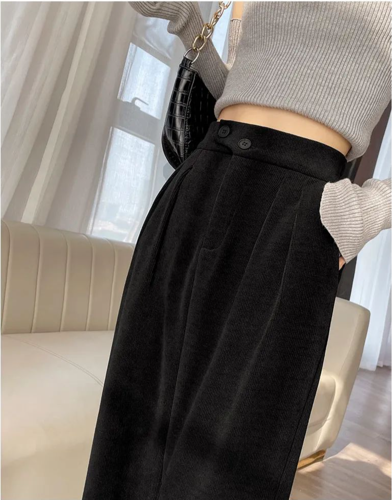 所以今天我带来这款:保暖兼时尚的-雪尼尔西装直筒裤,不挑年纪,不挑身材。
