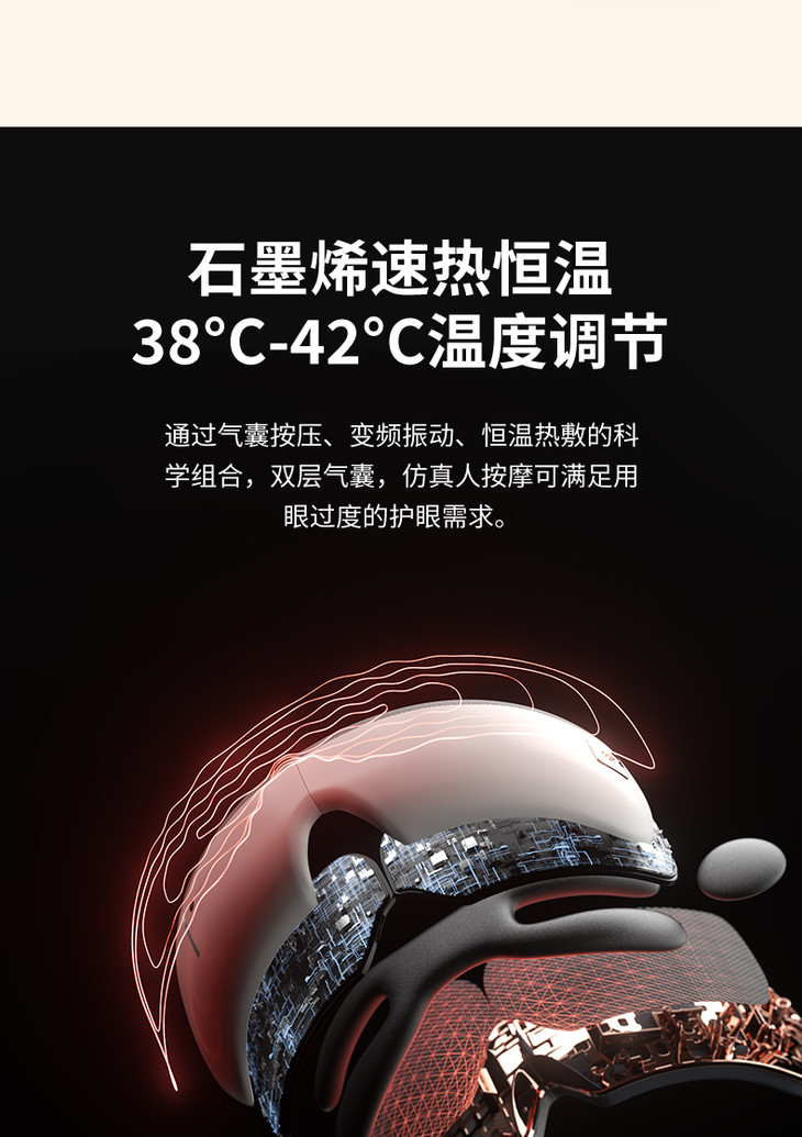 石墨烯恒温热敷,赶走眼部积累的疲劳,还可以帮助肌肤吸收营养物质。