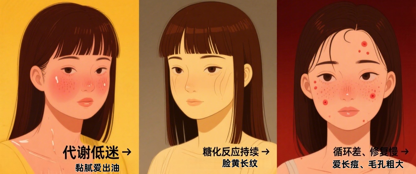 ❌循环差、修复慢→痘痘反复、毛孔粗大