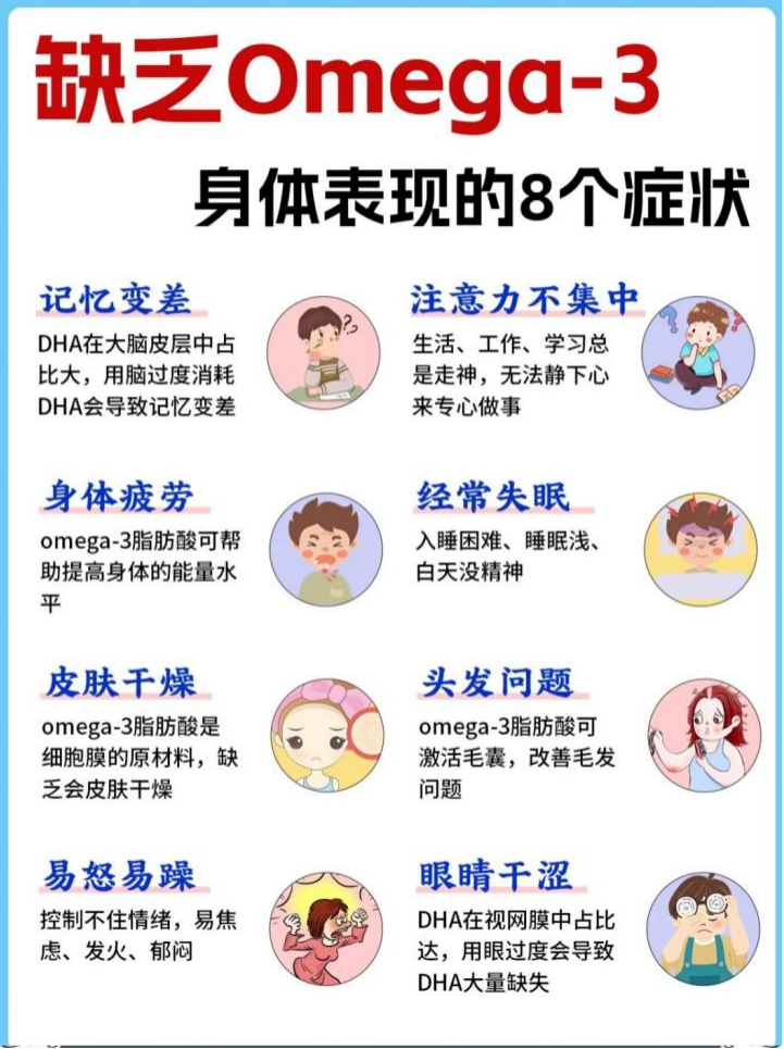 针对我们打工人常年吃外卖饮食不规律,营养不全面可能会影响人体代谢功能,导致人体抵抗力下降,Omega-3作为营养元素,是人体恢复健康状态的小推手。