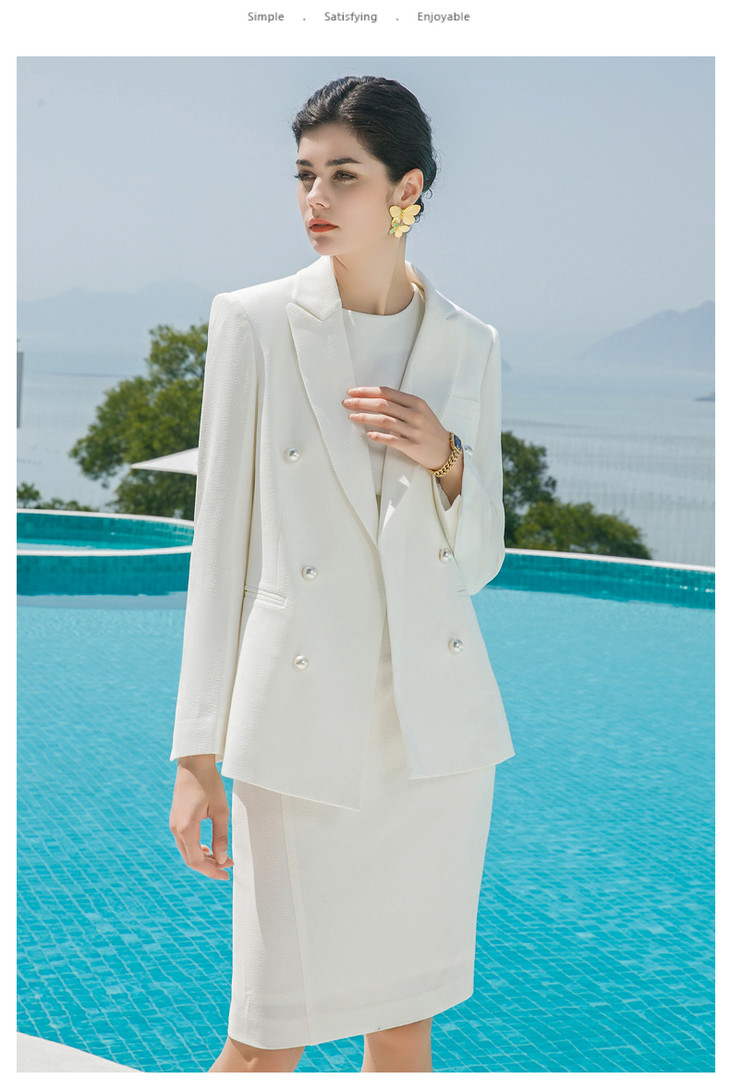今天给姐妹们推荐一套优雅气质的白色西装套装