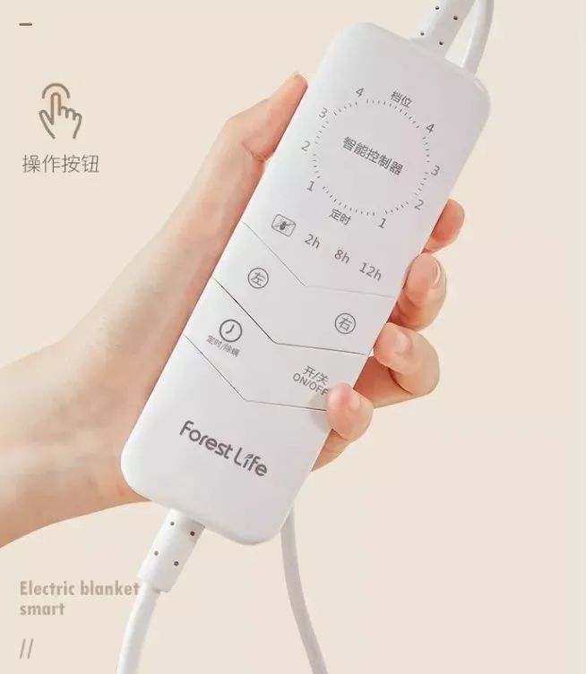 而且为了进一步做好安全发热的工作,Forest Life电热毯还加入了智能睡眠控温的装置。