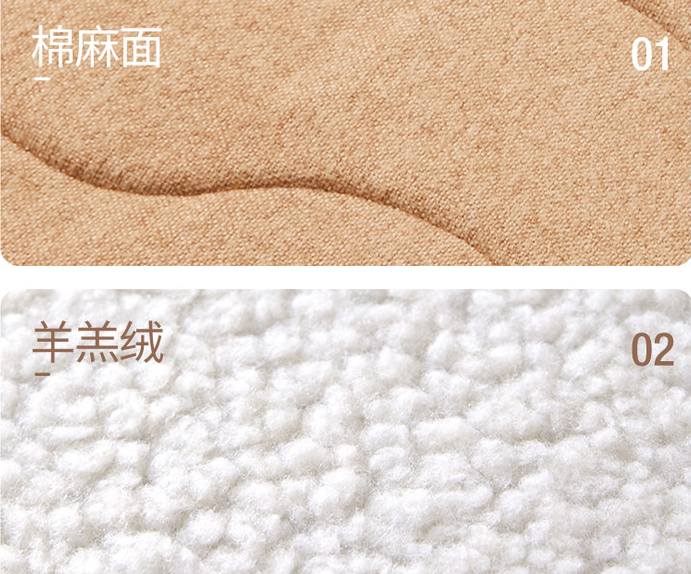 而另一面则是加厚的羊羔绒,触感更加柔软,就像是小绵羊身上的毛一样蓬松温暖。