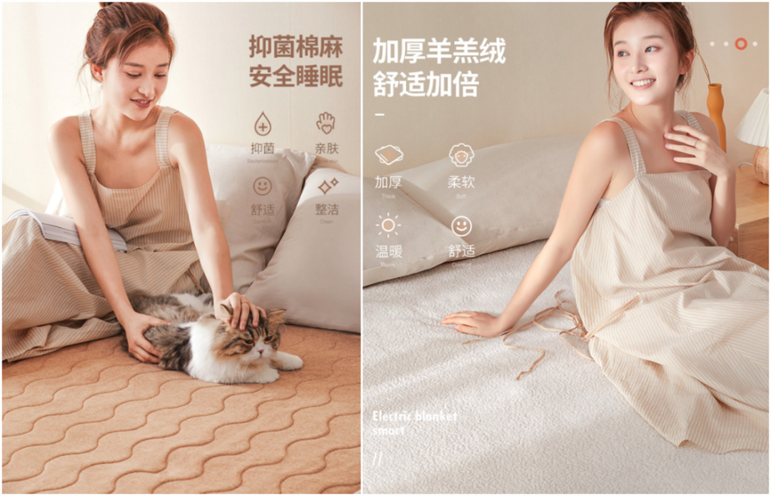在双人规格的电热毯上,你还可以体验“同床异温”的功能。