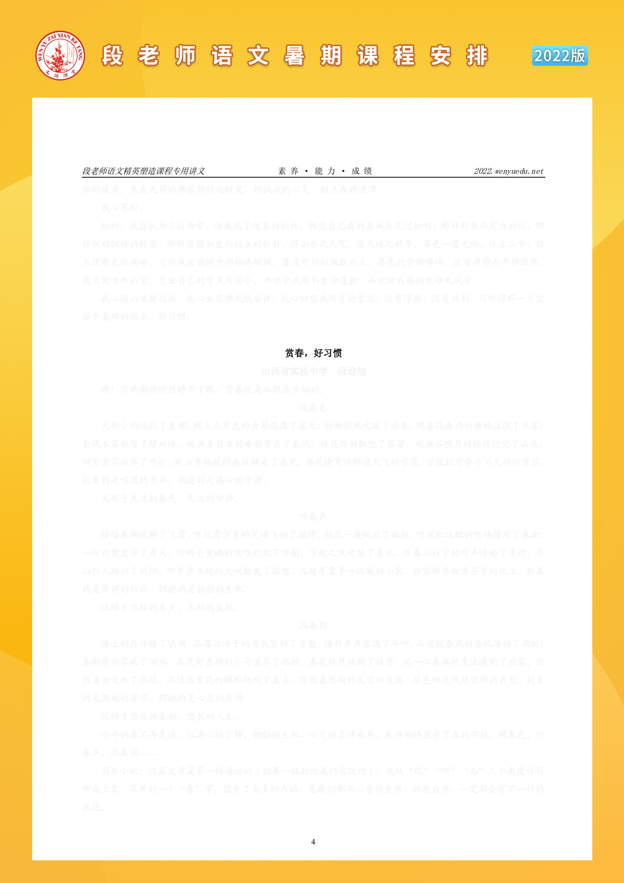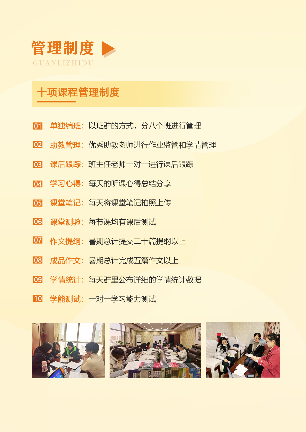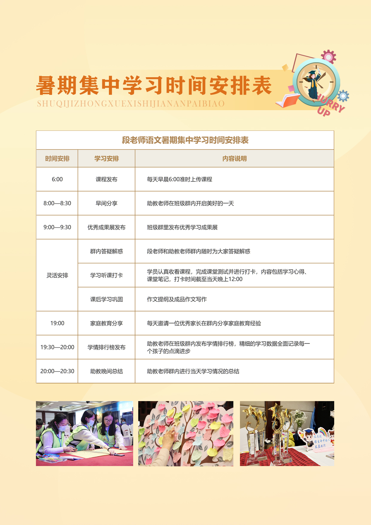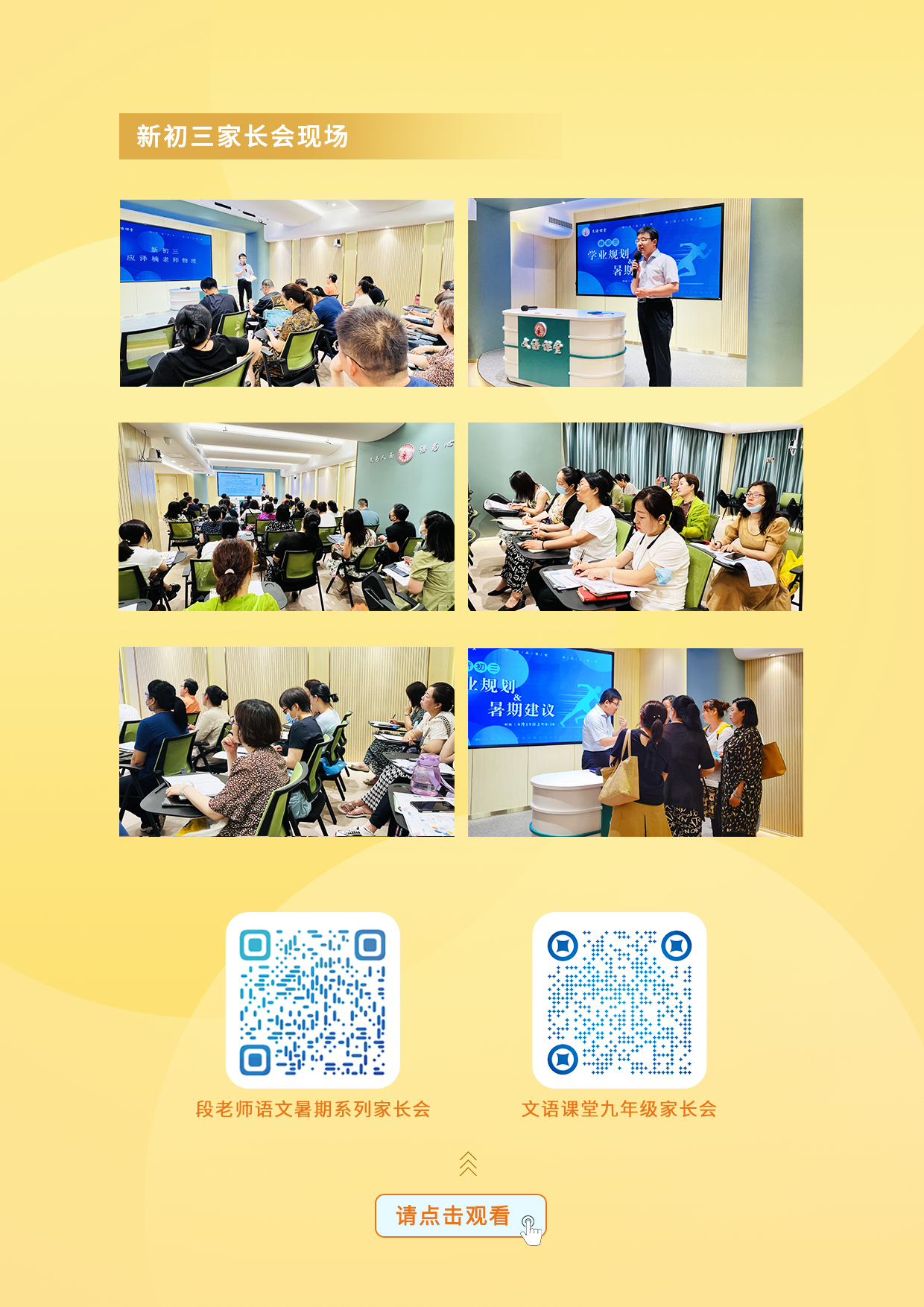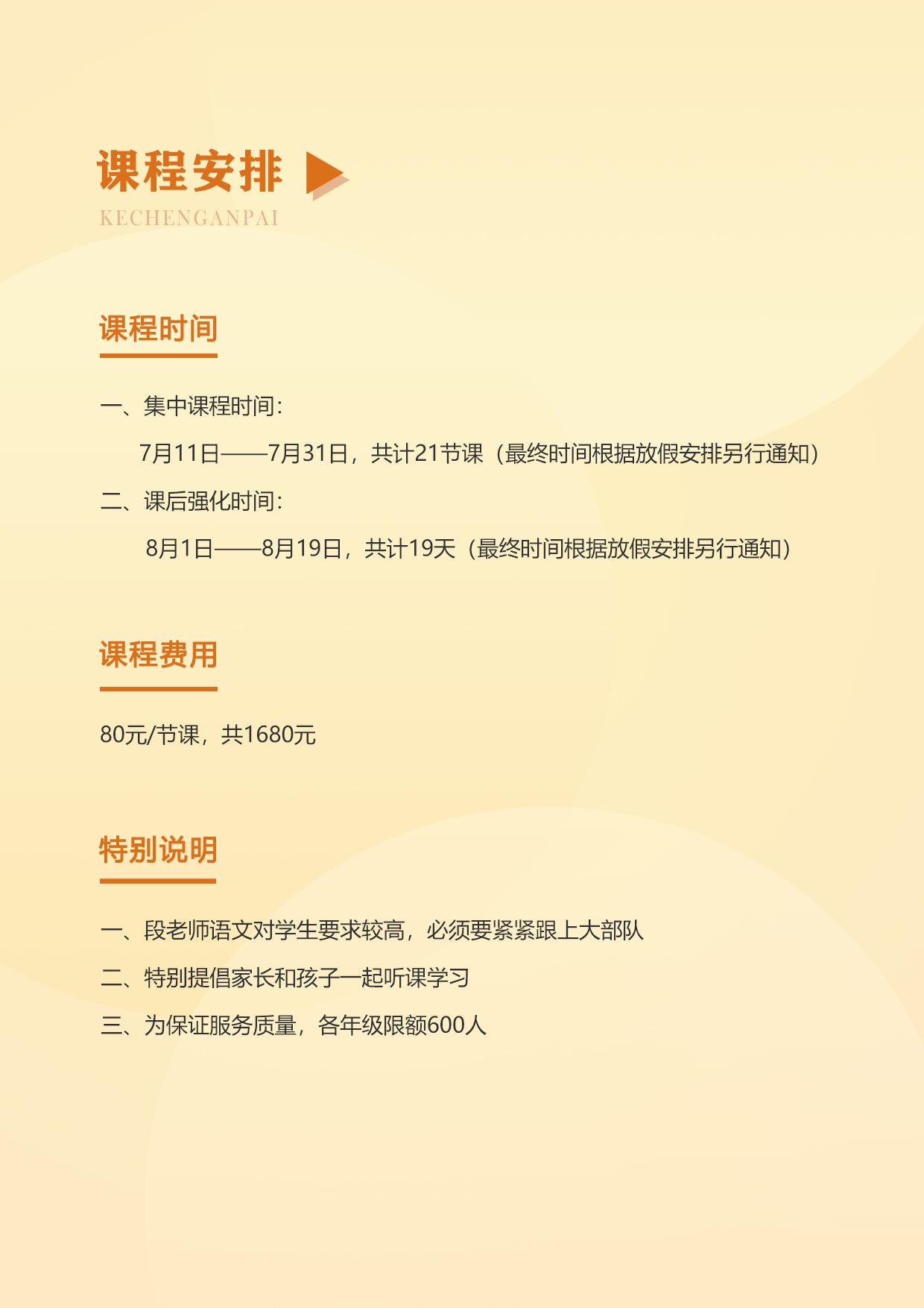 九年级暑期课程第一讲为学法指导,后面的每讲学习内容均包括“课堂测试”和“提纲作文赏析”两大部分。