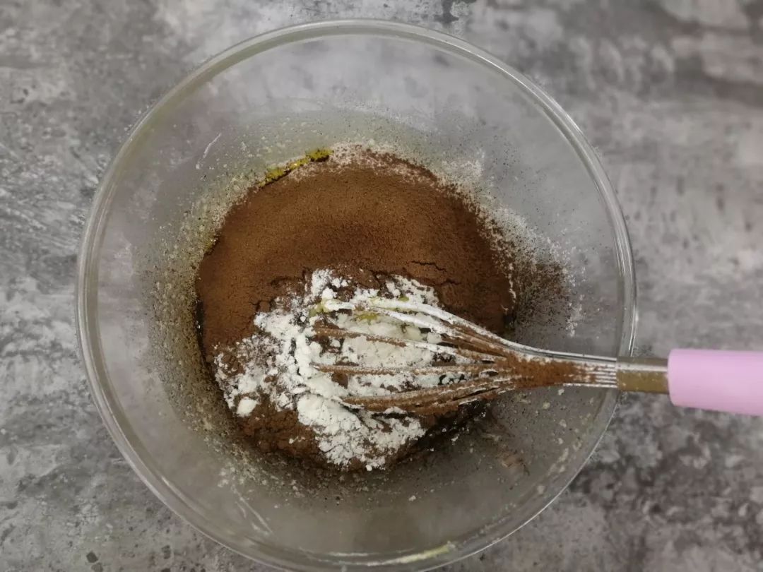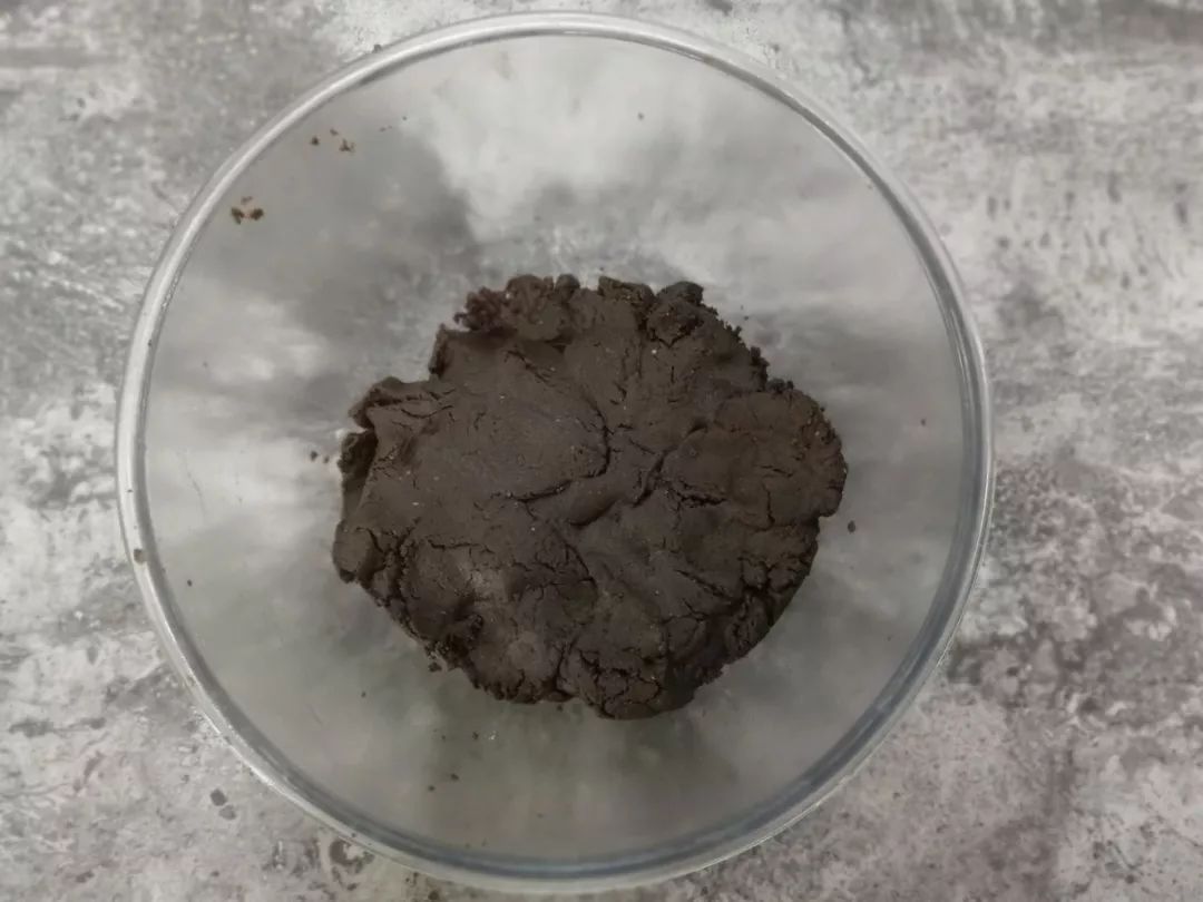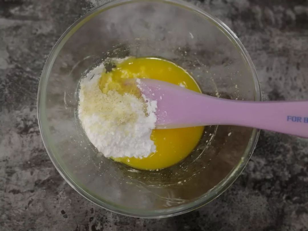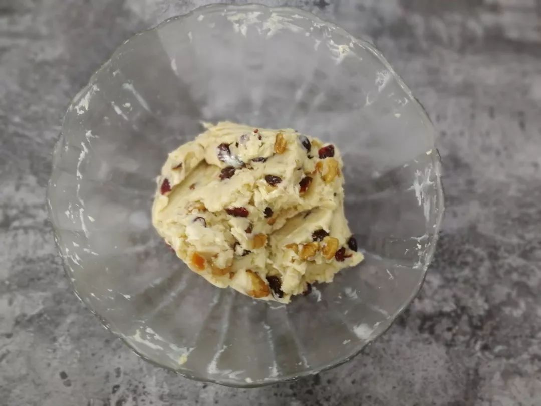 搅拌至无干粉的时候,覆盖保鲜膜放置备用;